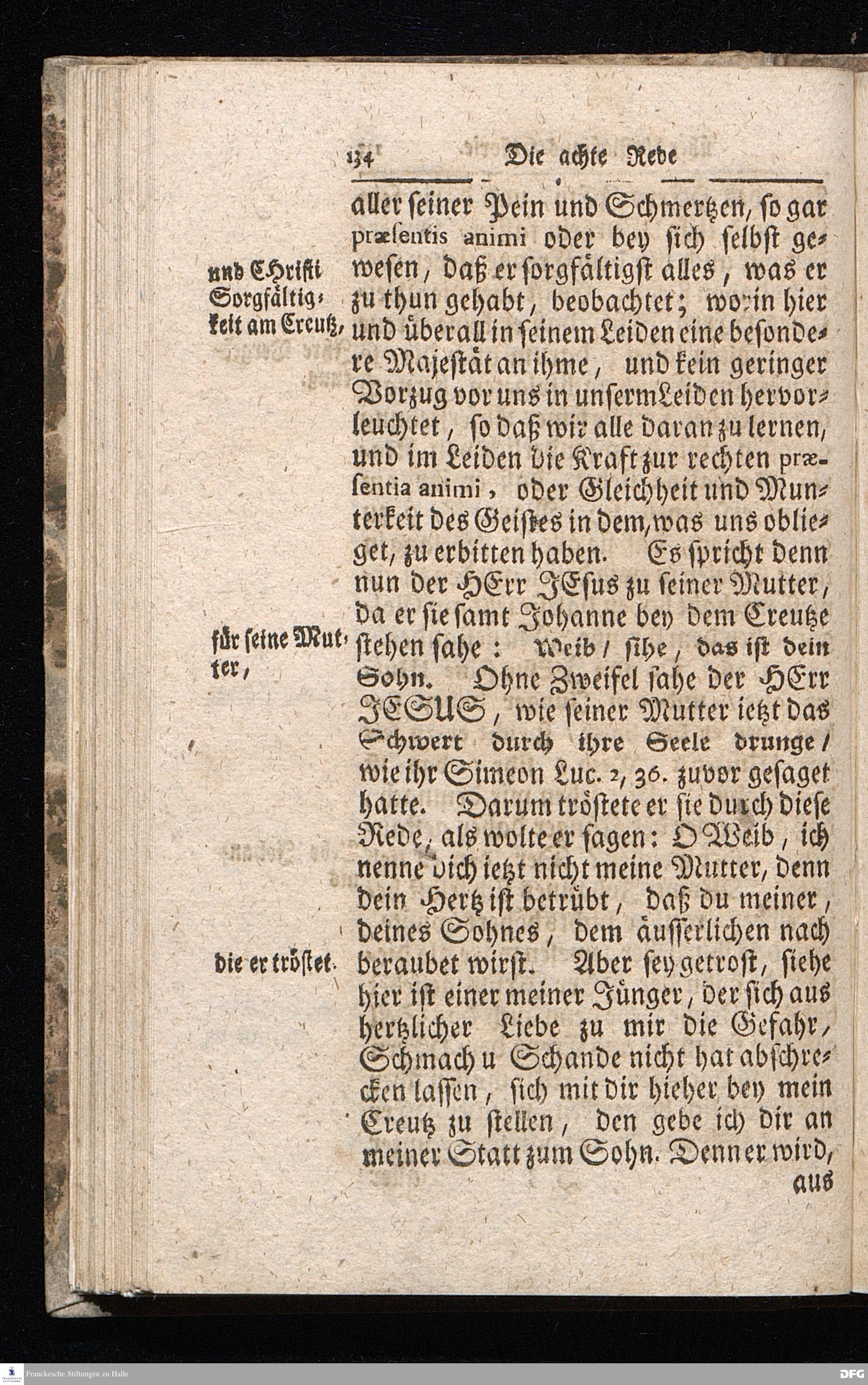 August Hermann Franckens / S.Theol.Prof.& Past.zu S.Ulrich und des Gymnasii Scholarchæ, Oeffentliche Reden über die Paßions=Historie / Wie dieselbe vom Evangelisten Johanne im 18.u.19. Cap. beschrieben ist / gehalten Von Esto mihi bis Ostern 1716. In dem Wäysenhause zu Glaucha an Halle. EDITIO II. HALLE / Gedruckt und verlegt im Wäysenhause MDCCXIX.