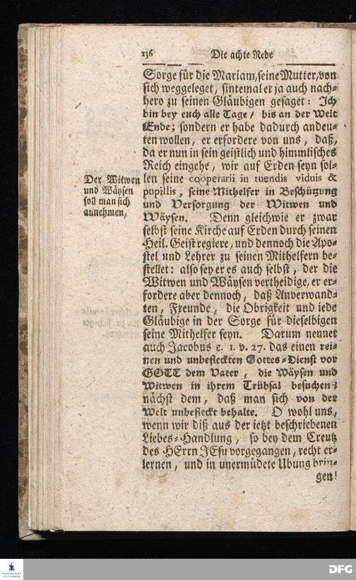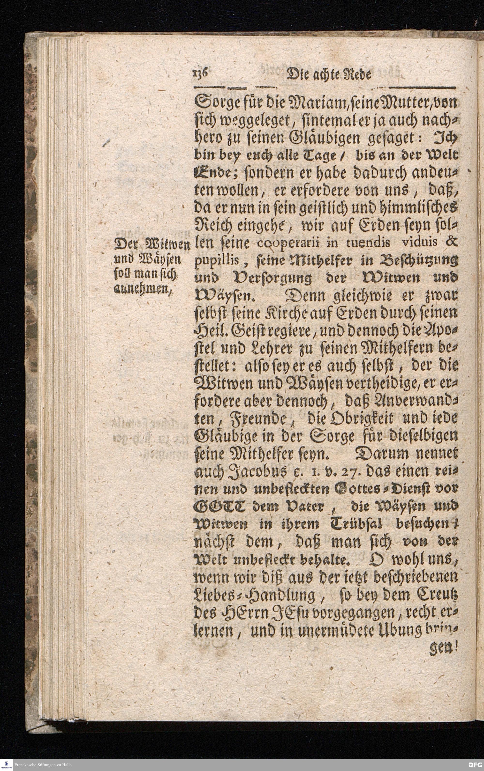 August Hermann Franckens / S.Theol.Prof.& Past.zu S.Ulrich und des Gymnasii Scholarchæ, Oeffentliche Reden über die Paßions=Historie / Wie dieselbe vom Evangelisten Johanne im 18.u.19. Cap. beschrieben ist / gehalten Von Esto mihi bis Ostern 1716. In dem Wäysenhause zu Glaucha an Halle. EDITIO II. HALLE / Gedruckt und verlegt im Wäysenhause MDCCXIX.