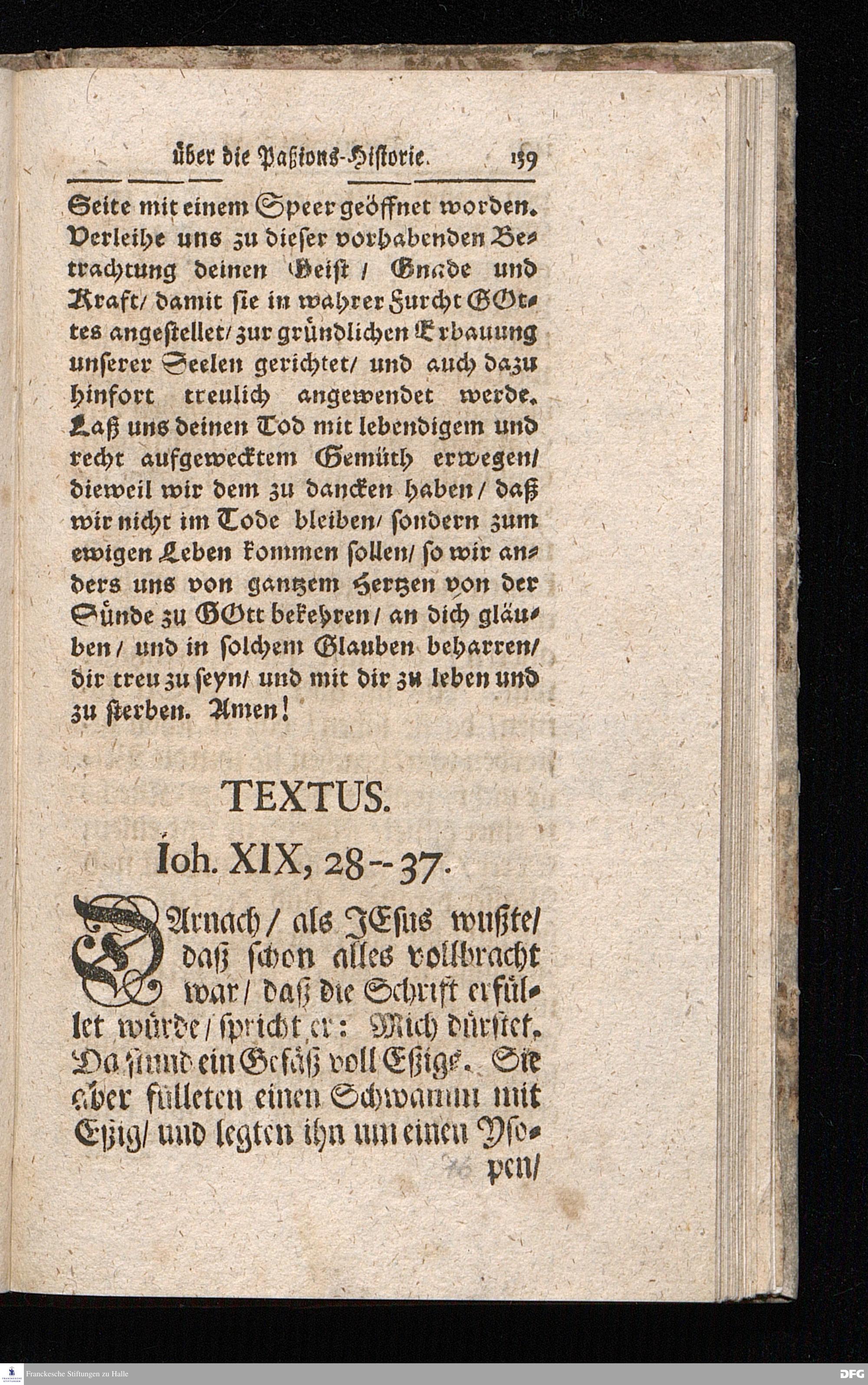 August Hermann Franckens / S.Theol.Prof.& Past.zu S.Ulrich und des Gymnasii Scholarchæ, Oeffentliche Reden über die Paßions=Historie / Wie dieselbe vom Evangelisten Johanne im 18.u.19. Cap. beschrieben ist / gehalten Von Esto mihi bis Ostern 1716. In dem Wäysenhause zu Glaucha an Halle. EDITIO II. HALLE / Gedruckt und verlegt im Wäysenhause MDCCXIX.