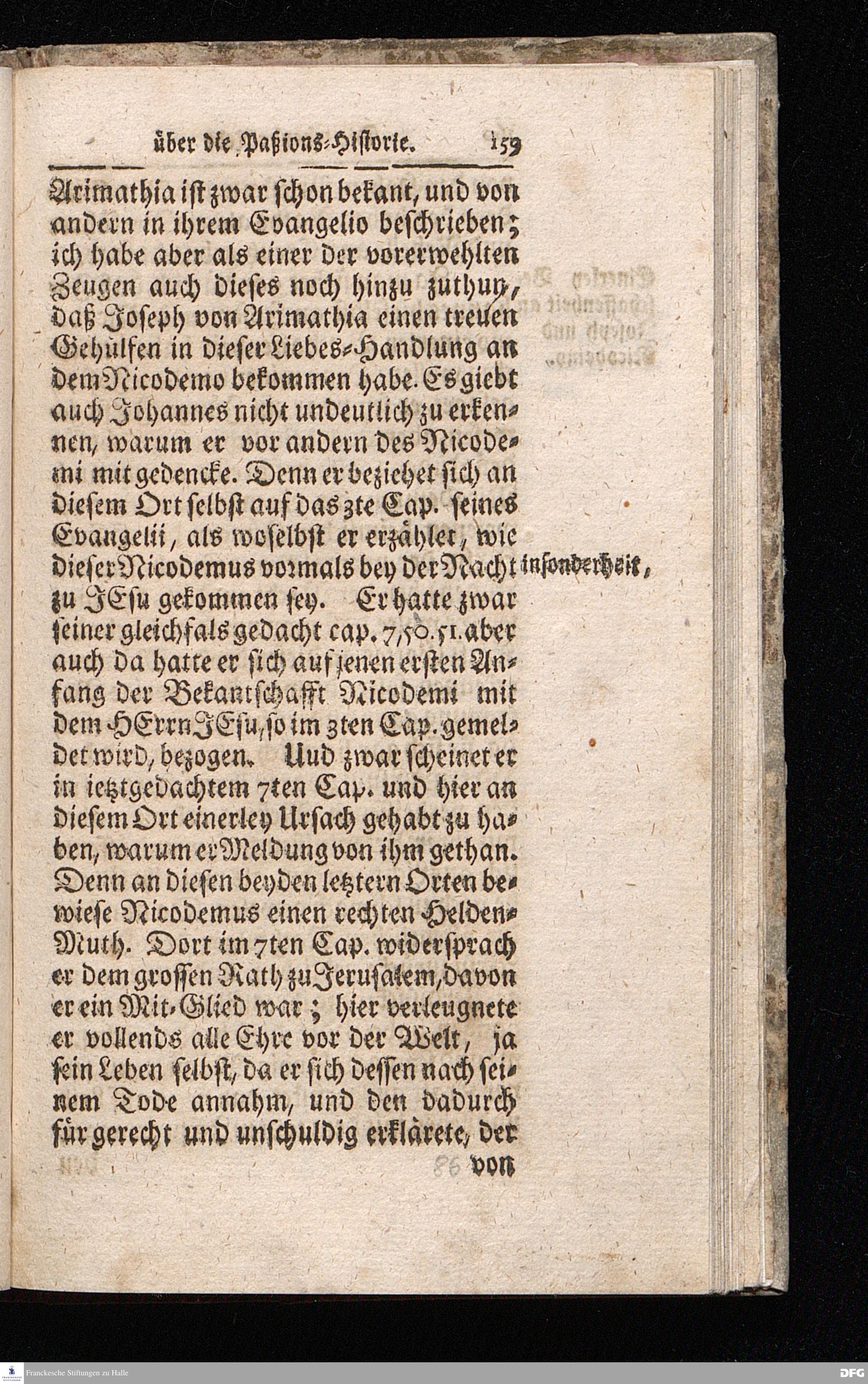 August Hermann Franckens / S.Theol.Prof.& Past.zu S.Ulrich und des Gymnasii Scholarchæ, Oeffentliche Reden über die Paßions=Historie / Wie dieselbe vom Evangelisten Johanne im 18.u.19. Cap. beschrieben ist / gehalten Von Esto mihi bis Ostern 1716. In dem Wäysenhause zu Glaucha an Halle. EDITIO II. HALLE / Gedruckt und verlegt im Wäysenhause MDCCXIX.