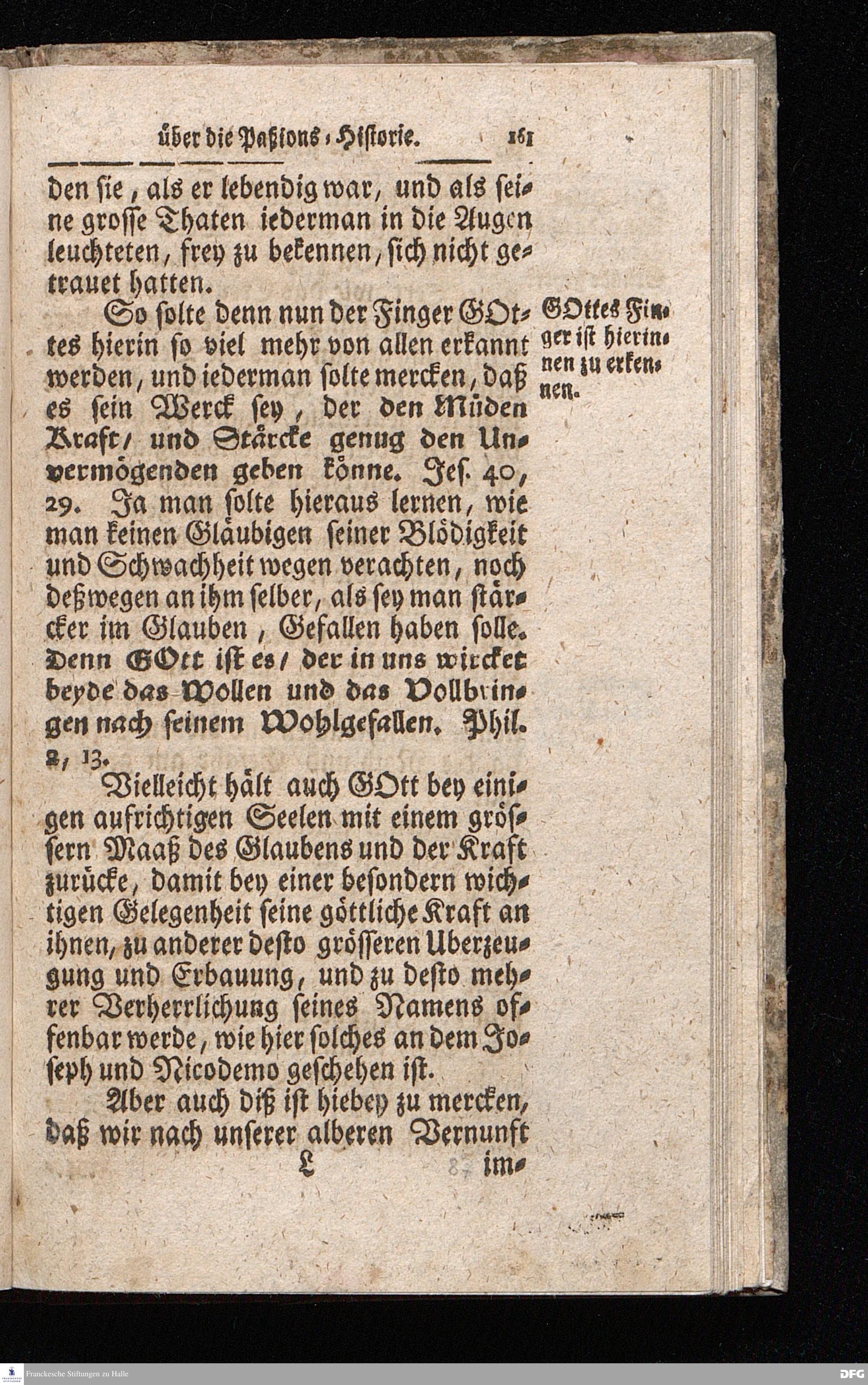 August Hermann Franckens / S.Theol.Prof.& Past.zu S.Ulrich und des Gymnasii Scholarchæ, Oeffentliche Reden über die Paßions=Historie / Wie dieselbe vom Evangelisten Johanne im 18.u.19. Cap. beschrieben ist / gehalten Von Esto mihi bis Ostern 1716. In dem Wäysenhause zu Glaucha an Halle. EDITIO II. HALLE / Gedruckt und verlegt im Wäysenhause MDCCXIX.