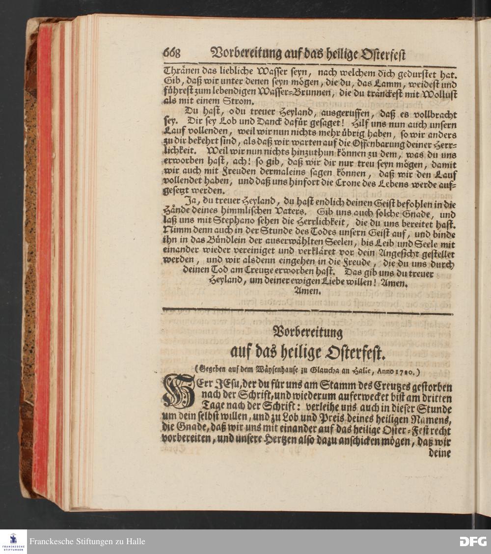 August Hermann Franckens, S.Theol.Prof.und Past. Sonn= und Fest=Tags=Predigten / Welche Theils in Halle, theils an verschiedenen auswärtigen Oertern, von wichtigen und auserlesenen Materien gehalten worden, Nebst Vorbereitung auf die hohen Feste und nützlichen Registern. Dritte Auflage. HALLE, gedruckt und verlegt im Wäysen=Hause MDCCXL. Mit Königl.Preuß.und Churfl.Brandenb.Privileg.