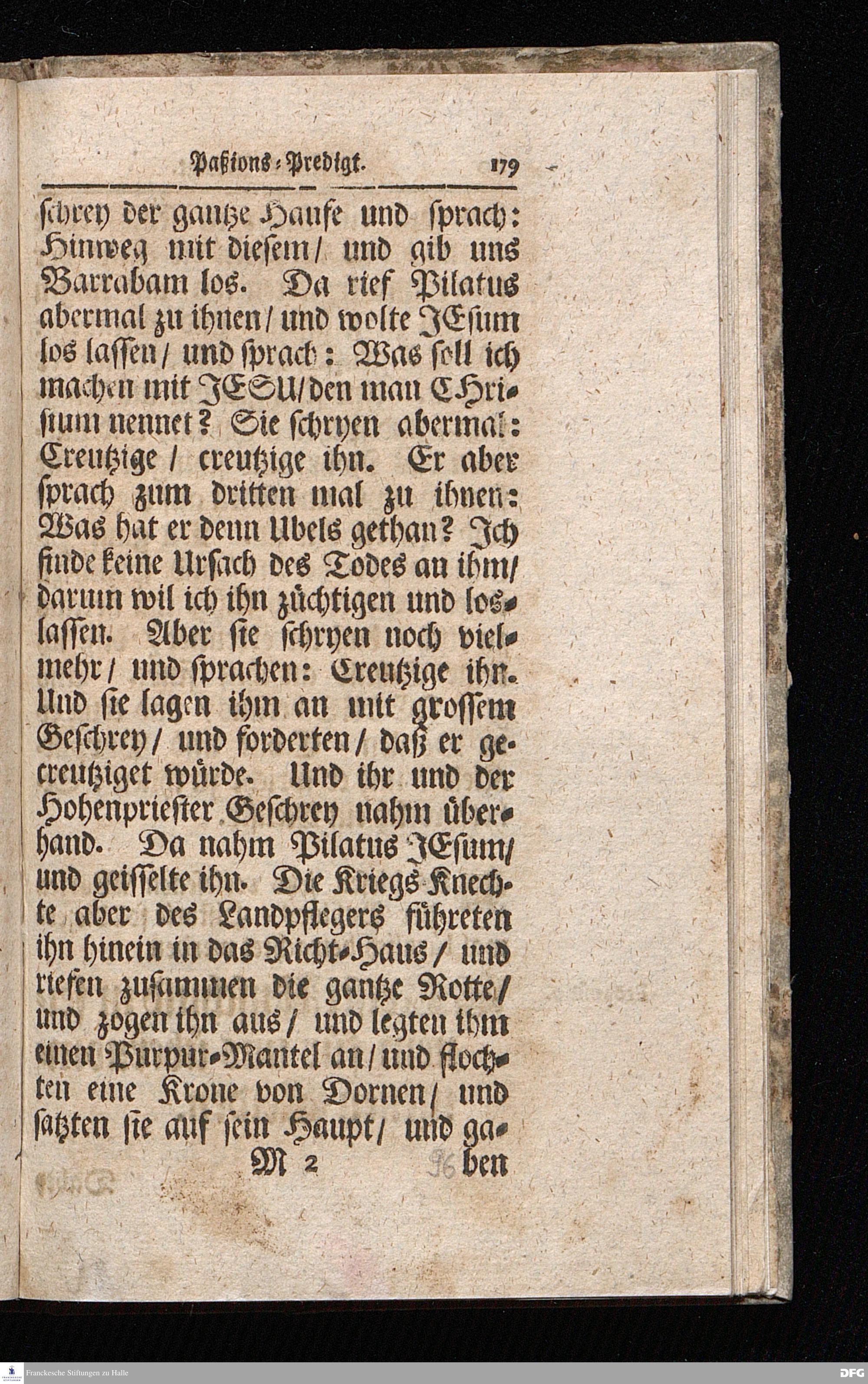 August Hermann Franckens / S.Theol.Prof.& Past.zu S.Ulrich und des Gymnasii Scholarchæ, Oeffentliche Reden über die Paßions=Historie / Wie dieselbe vom Evangelisten Johanne im 18.u.19. Cap. beschrieben ist / gehalten Von Esto mihi bis Ostern 1716. In dem Wäysenhause zu Glaucha an Halle. EDITIO II. HALLE / Gedruckt und verlegt im Wäysenhause MDCCXIX.