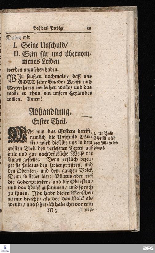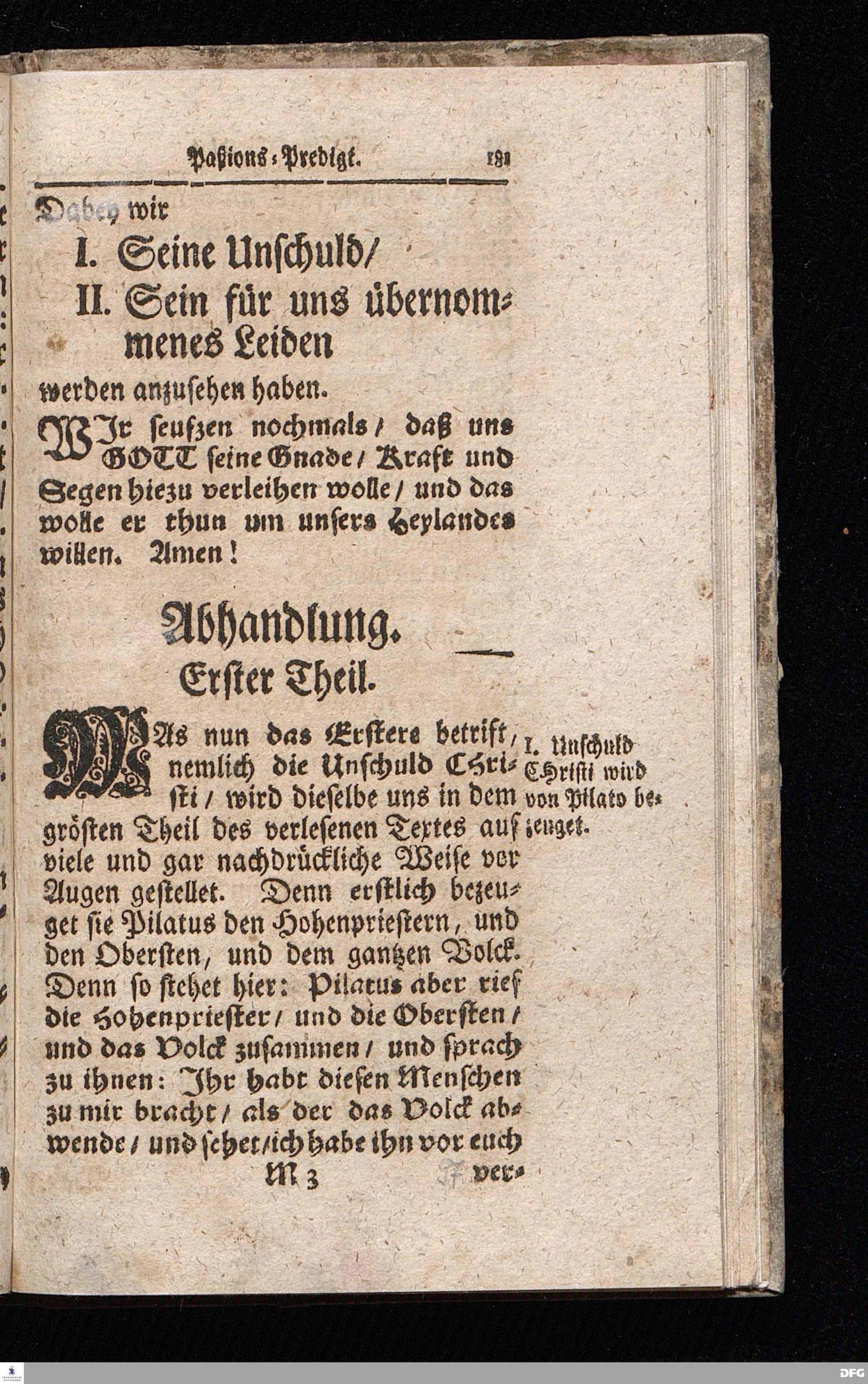 August Hermann Franckens / S.Theol.Prof.& Past.zu S.Ulrich und des Gymnasii Scholarchæ, Oeffentliche Reden über die Paßions=Historie / Wie dieselbe vom Evangelisten Johanne im 18.u.19. Cap. beschrieben ist / gehalten Von Esto mihi bis Ostern 1716. In dem Wäysenhause zu Glaucha an Halle. EDITIO II. HALLE / Gedruckt und verlegt im Wäysenhause MDCCXIX.