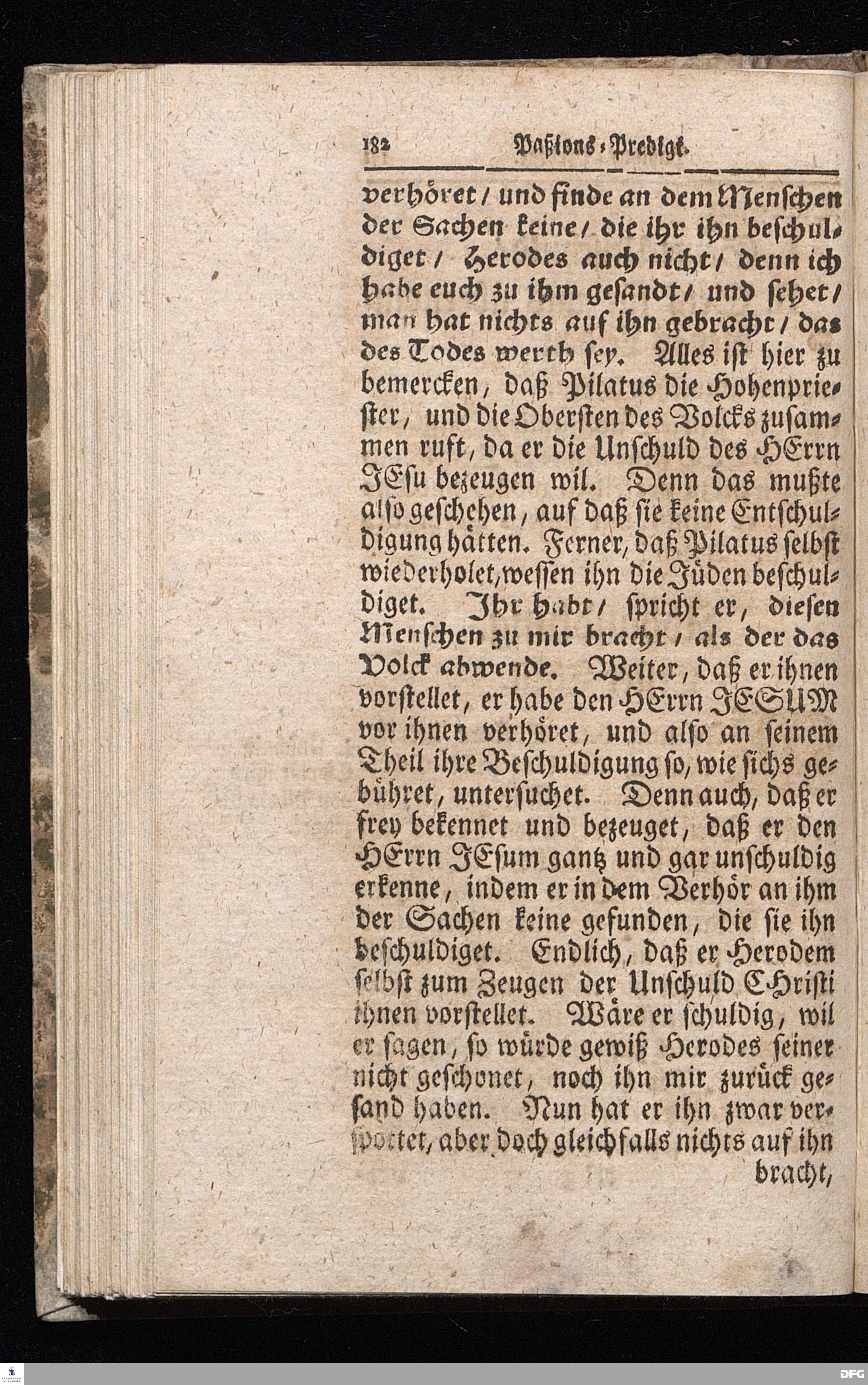 August Hermann Franckens / S.Theol.Prof.& Past.zu S.Ulrich und des Gymnasii Scholarchæ, Oeffentliche Reden über die Paßions=Historie / Wie dieselbe vom Evangelisten Johanne im 18.u.19. Cap. beschrieben ist / gehalten Von Esto mihi bis Ostern 1716. In dem Wäysenhause zu Glaucha an Halle. EDITIO II. HALLE / Gedruckt und verlegt im Wäysenhause MDCCXIX.