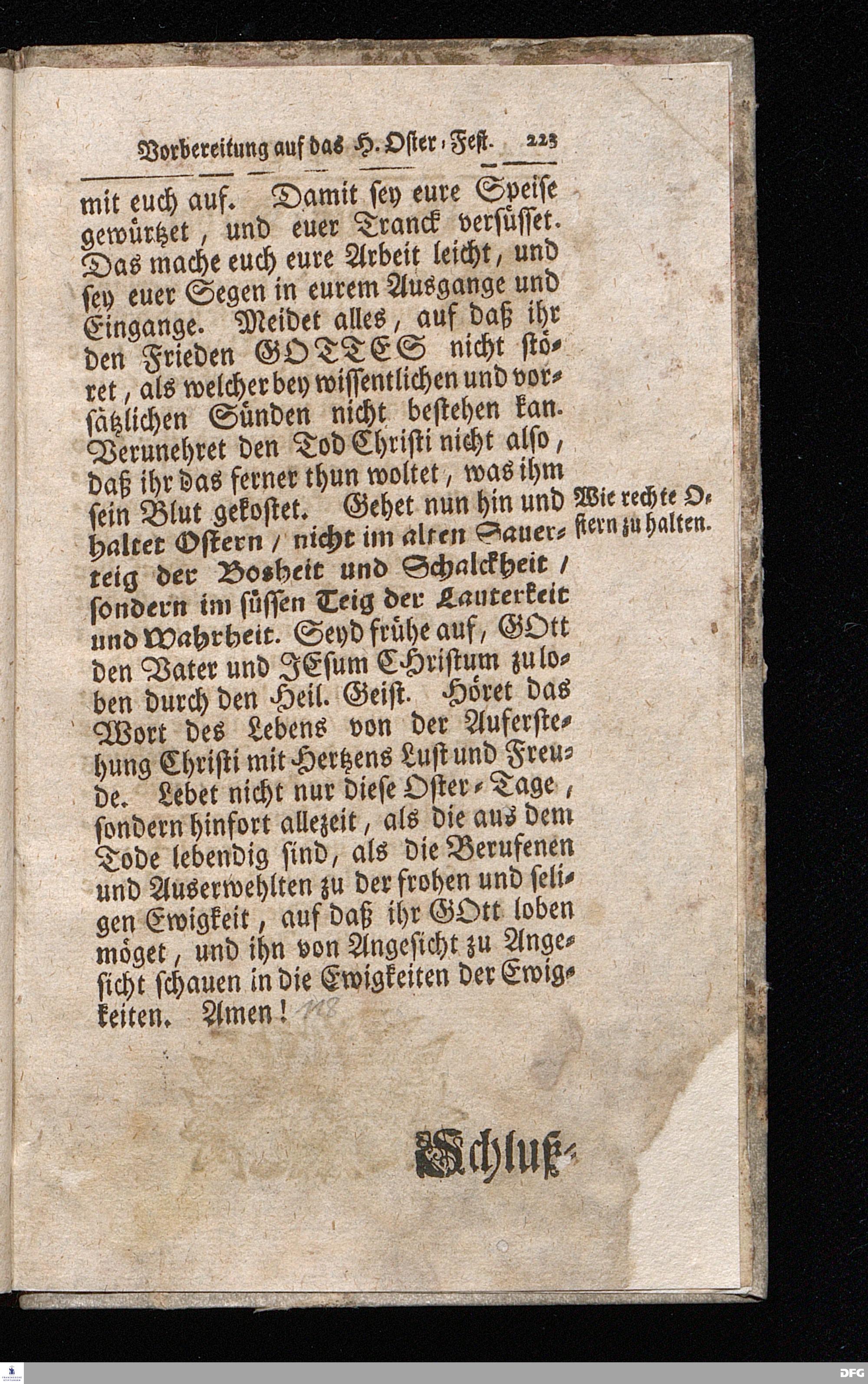 August Hermann Franckens / S.Theol.Prof.& Past.zu S.Ulrich und des Gymnasii Scholarchæ, Oeffentliche Reden über die Paßions=Historie / Wie dieselbe vom Evangelisten Johanne im 18.u.19. Cap. beschrieben ist / gehalten Von Esto mihi bis Ostern 1716. In dem Wäysenhause zu Glaucha an Halle. EDITIO II. HALLE / Gedruckt und verlegt im Wäysenhause MDCCXIX.