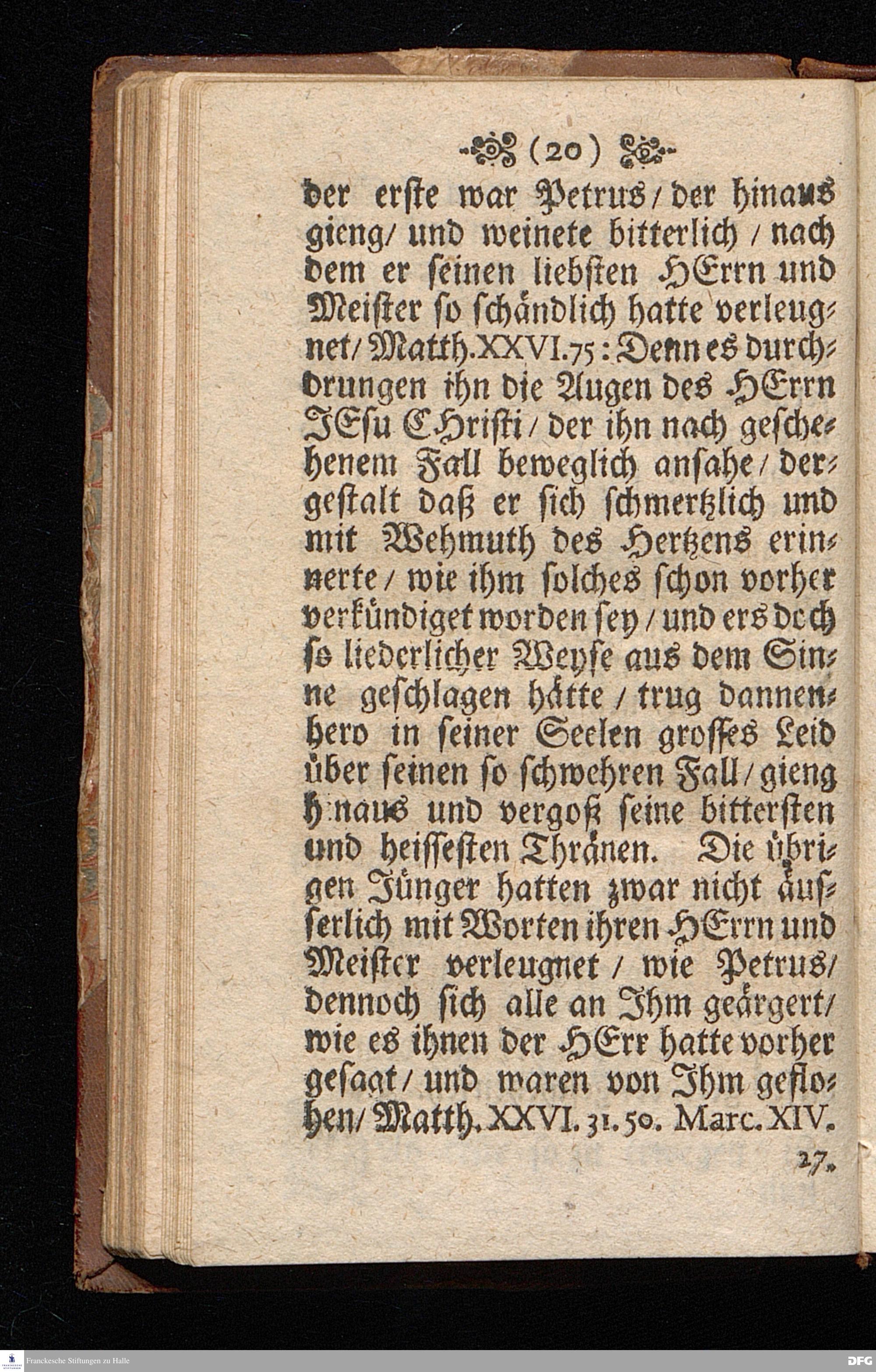 Der Auff kurtze Mühe und Arbeit erfolgende grosse Trost / In einer Predigt Uber das Evangelium Joh.XVI, vers.16==23, Am Sontag JUBILATE Anno 1697. In der St.Georgen=Kirche zu Glaucha an Halle vorgestellet von M.August Hermann Francken / Gr.& OO.LL.P.P.& P.Glauch. HALLE / Druckts Christian Henckel / Univers.Buchdr. J.J.C. 1698.