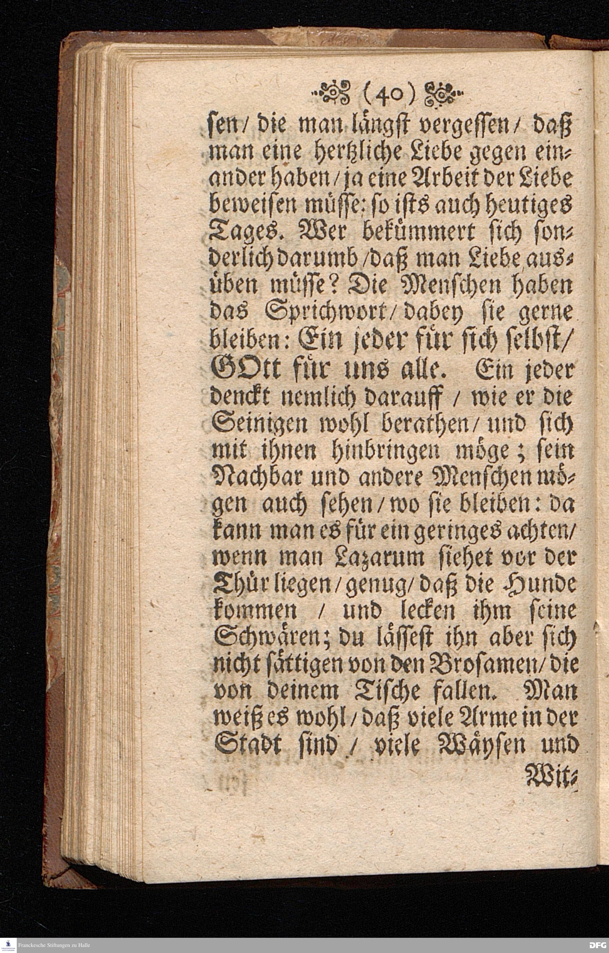 Der Auff kurtze Mühe und Arbeit erfolgende grosse Trost / In einer Predigt Uber das Evangelium Joh.XVI, vers.16==23, Am Sontag JUBILATE Anno 1697. In der St.Georgen=Kirche zu Glaucha an Halle vorgestellet von M.August Hermann Francken / Gr.& OO.LL.P.P.& P.Glauch. HALLE / Druckts Christian Henckel / Univers.Buchdr. J.J.C. 1698.