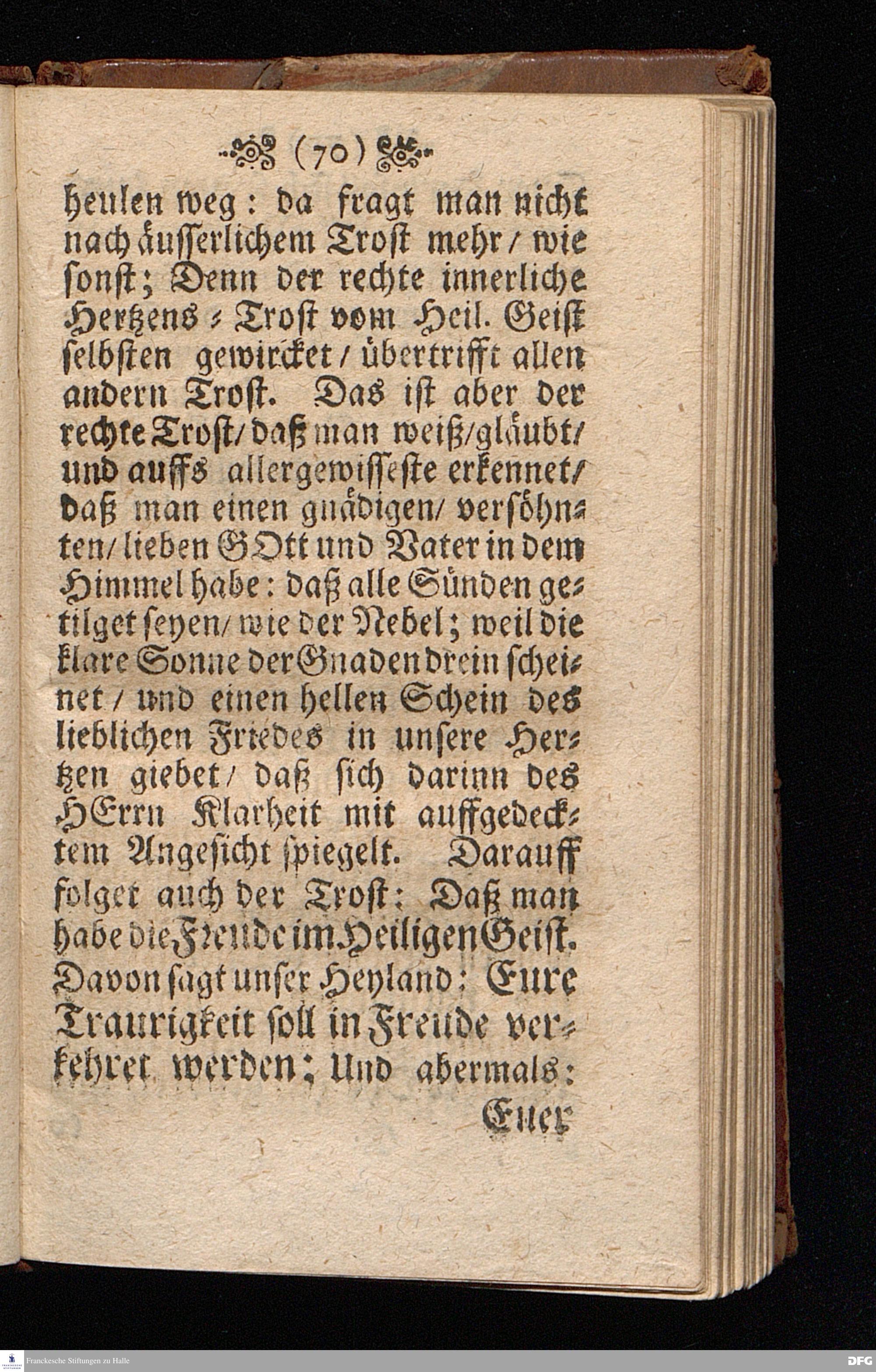 Der Auff kurtze Mühe und Arbeit erfolgende grosse Trost / In einer Predigt Uber das Evangelium Joh.XVI, vers.16==23, Am Sontag JUBILATE Anno 1697. In der St.Georgen=Kirche zu Glaucha an Halle vorgestellet von M.August Hermann Francken / Gr.& OO.LL.P.P.& P.Glauch. HALLE / Druckts Christian Henckel / Univers.Buchdr. J.J.C. 1698.