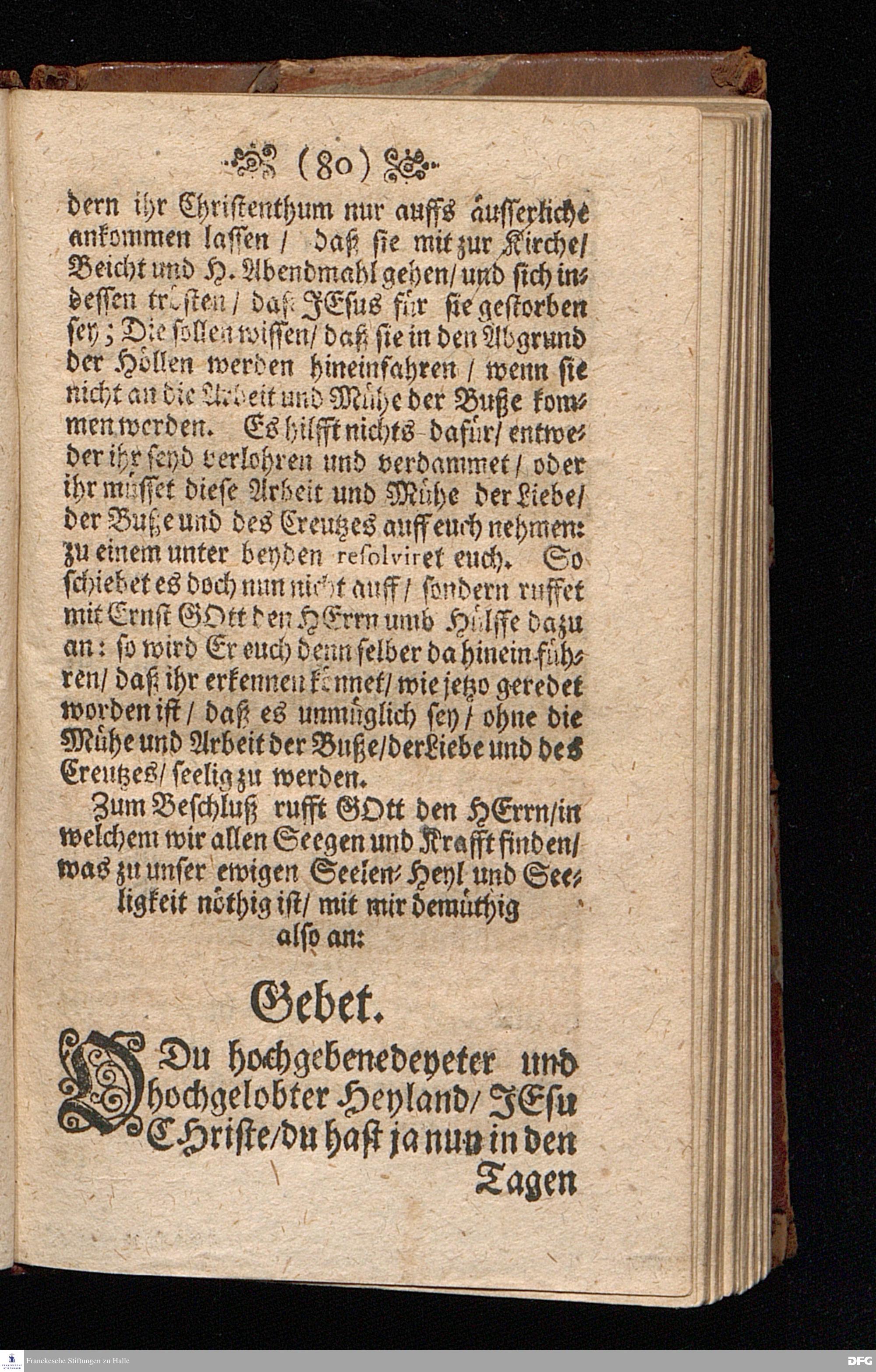 Der Auff kurtze Mühe und Arbeit erfolgende grosse Trost / In einer Predigt Uber das Evangelium Joh.XVI, vers.16==23, Am Sontag JUBILATE Anno 1697. In der St.Georgen=Kirche zu Glaucha an Halle vorgestellet von M.August Hermann Francken / Gr.& OO.LL.P.P.& P.Glauch. HALLE / Druckts Christian Henckel / Univers.Buchdr. J.J.C. 1698.