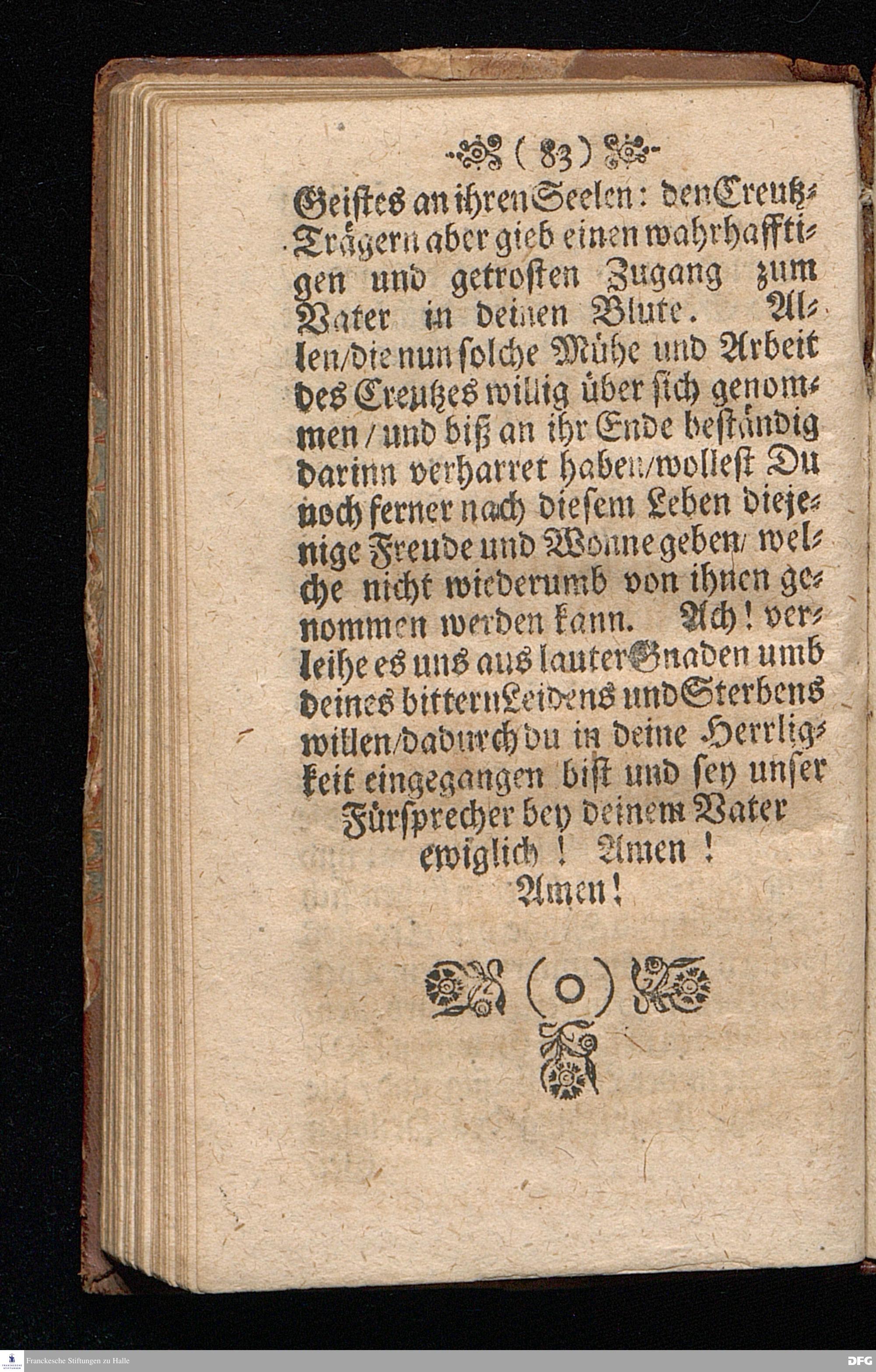 Der Auff kurtze Mühe und Arbeit erfolgende grosse Trost / In einer Predigt Uber das Evangelium Joh.XVI, vers.16==23, Am Sontag JUBILATE Anno 1697. In der St.Georgen=Kirche zu Glaucha an Halle vorgestellet von M.August Hermann Francken / Gr.& OO.LL.P.P.& P.Glauch. HALLE / Druckts Christian Henckel / Univers.Buchdr. J.J.C. 1698.