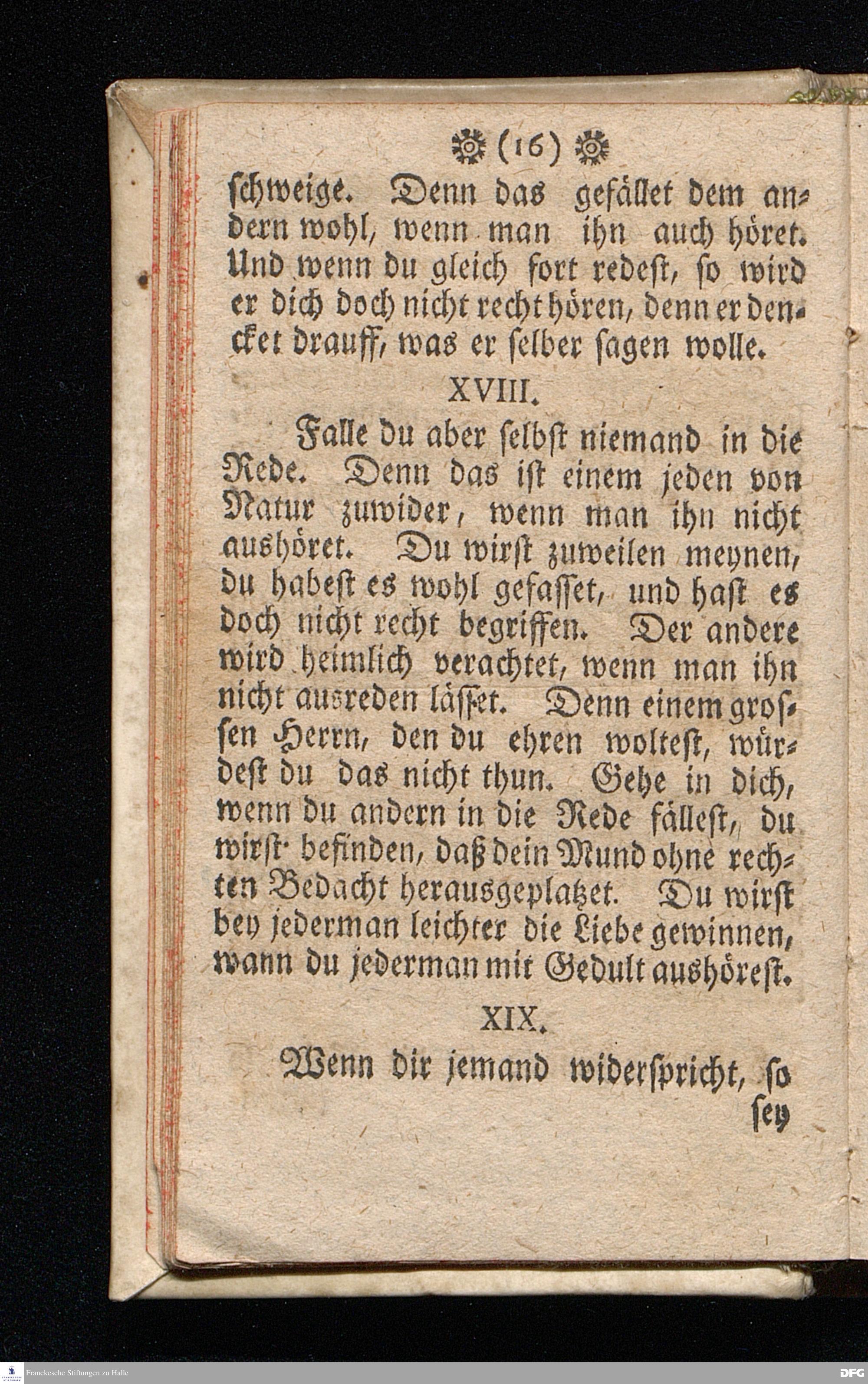 M.August Hermann Franckens Theolog.P.P.& P.Glauch. Schrifftmäßige Lebens-Regeln / Wie man so wohl bey als auch ausser [der] Gesellschafft die Liebe und Freundlichkeit gegen den Nächsten, die Freudigkeit eines guten Gewissens für GOTT bewahren, und im Christenthum zunehmen soll. Zum Siebenden mal auffgeleget. LEIPZIG, Bey Johann Heinichens sel. Witwe. 1717.
