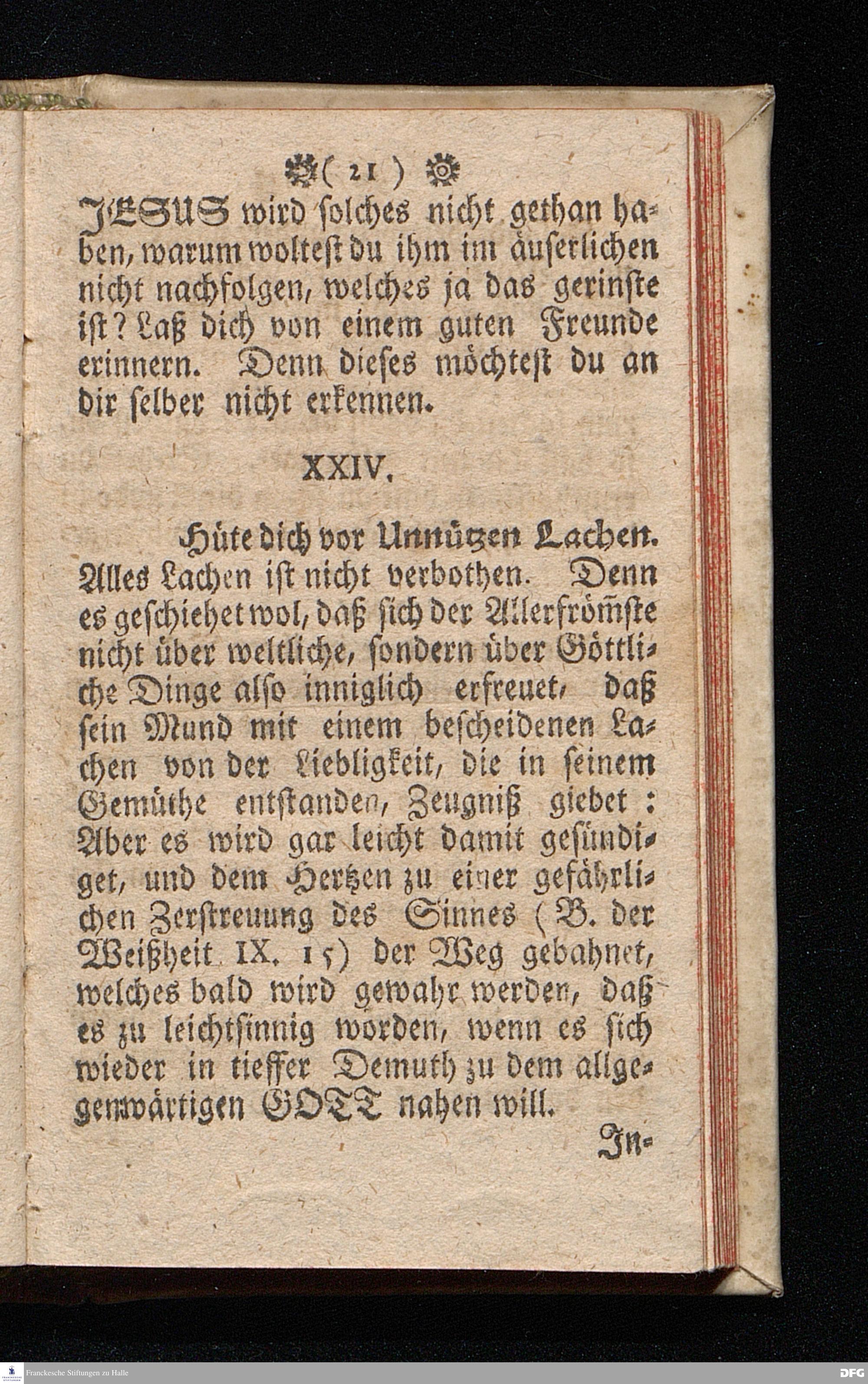 M.August Hermann Franckens Theolog.P.P.& P.Glauch. Schrifftmäßige Lebens-Regeln / Wie man so wohl bey als auch ausser [der] Gesellschafft die Liebe und Freundlichkeit gegen den Nächsten, die Freudigkeit eines guten Gewissens für GOTT bewahren, und im Christenthum zunehmen soll. Zum Siebenden mal auffgeleget. LEIPZIG, Bey Johann Heinichens sel. Witwe. 1717.