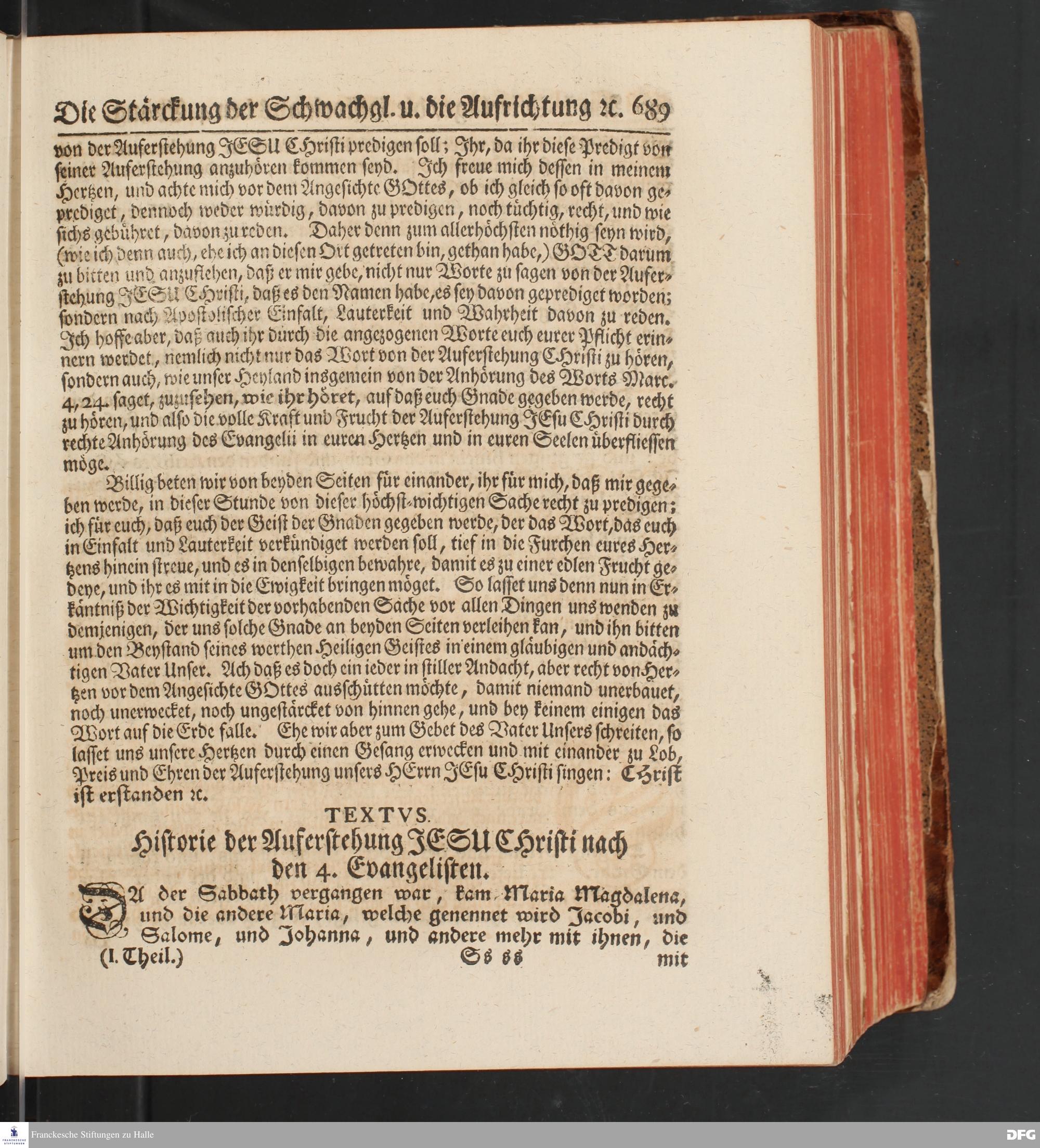 August Hermann Franckens, S.Theol.Prof.und Past. Sonn= und Fest=Tags=Predigten / Welche Theils in Halle, theils an verschiedenen auswärtigen Oertern, von wichtigen und auserlesenen Materien gehalten worden, Nebst Vorbereitung auf die hohen Feste und nützlichen Registern. Dritte Auflage. HALLE, gedruckt und verlegt im Wäysen=Hause MDCCXL. Mit Königl.Preuß.und Churfl.Brandenb.Privileg.