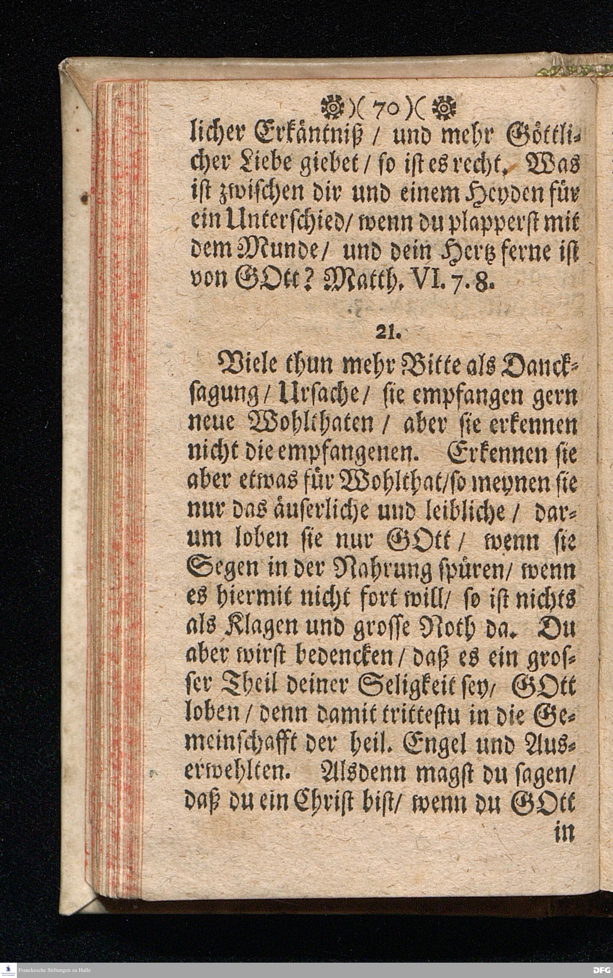 M.August Hermann Franckens Theolog.P.P.& P.Glauch. Schrifftmäßige Lebens-Regeln / Wie man so wohl bey als auch ausser [der] Gesellschafft die Liebe und Freundlichkeit gegen den Nächsten, die Freudigkeit eines guten Gewissens für GOTT bewahren, und im Christenthum zunehmen soll. Zum Siebenden mal auffgeleget. LEIPZIG, Bey Johann Heinichens sel. Witwe. 1717.