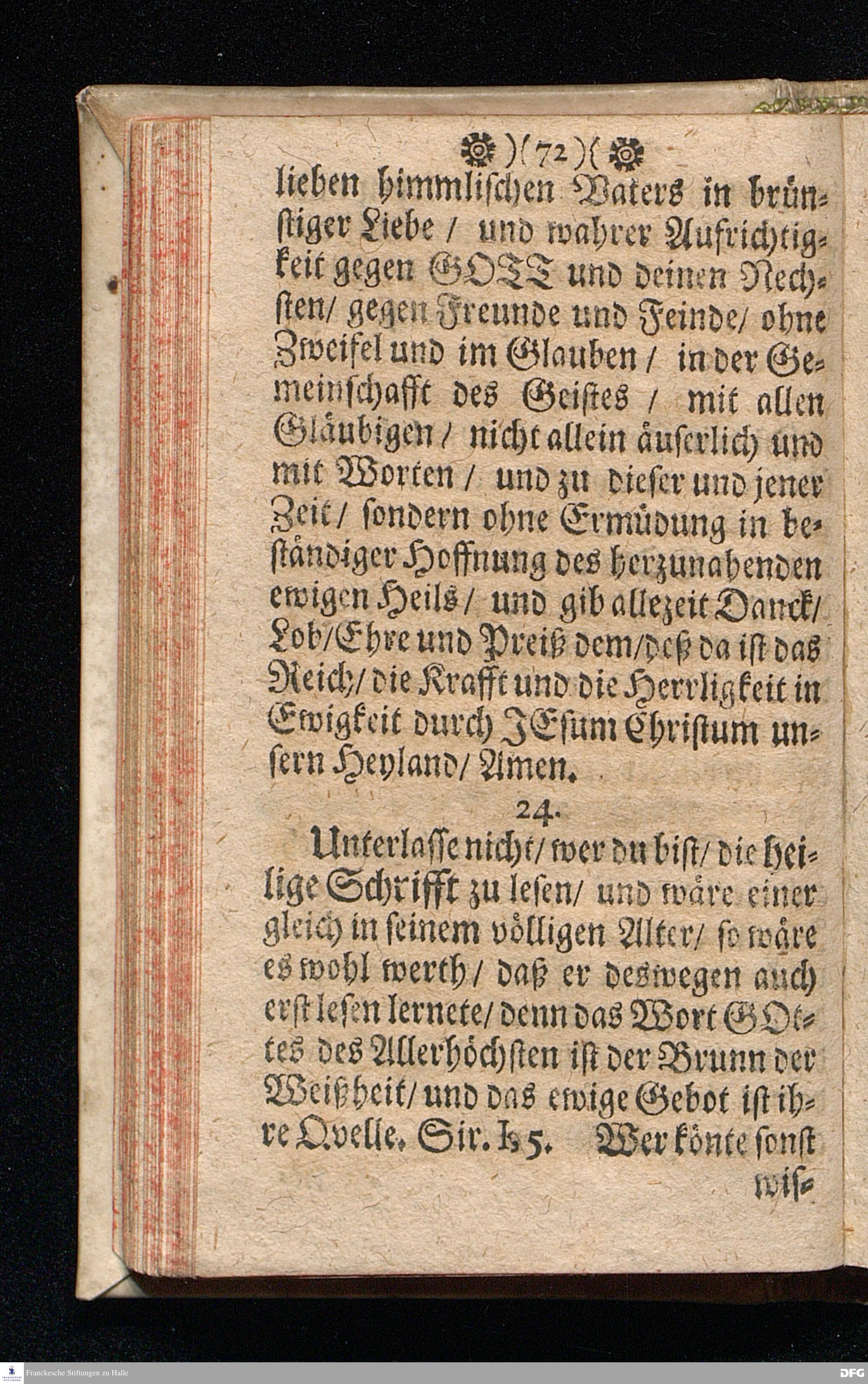 M.August Hermann Franckens Theolog.P.P.& P.Glauch. Schrifftmäßige Lebens-Regeln / Wie man so wohl bey als auch ausser [der] Gesellschafft die Liebe und Freundlichkeit gegen den Nächsten, die Freudigkeit eines guten Gewissens für GOTT bewahren, und im Christenthum zunehmen soll. Zum Siebenden mal auffgeleget. LEIPZIG, Bey Johann Heinichens sel. Witwe. 1717.