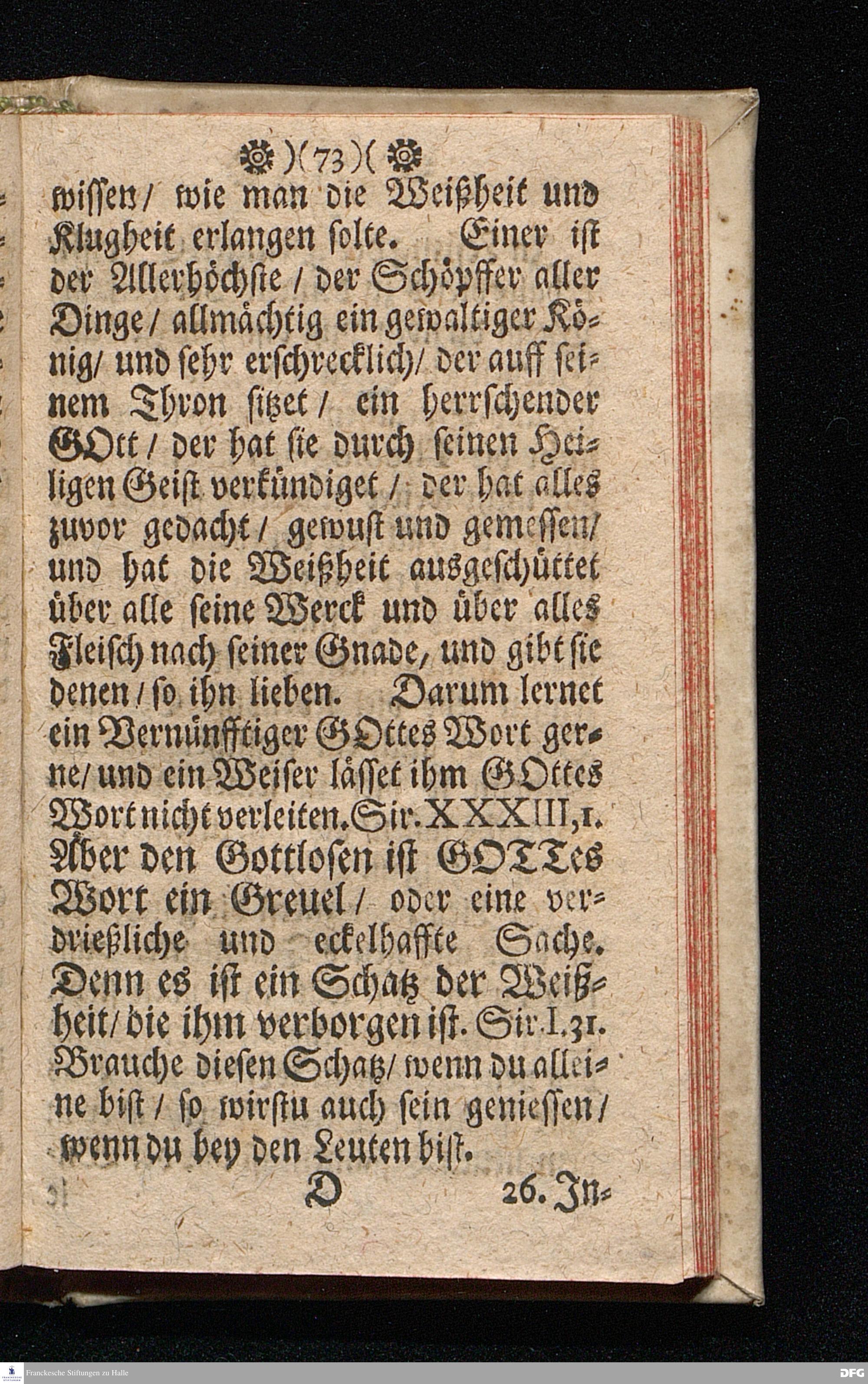 M.August Hermann Franckens Theolog.P.P.& P.Glauch. Schrifftmäßige Lebens-Regeln / Wie man so wohl bey als auch ausser [der] Gesellschafft die Liebe und Freundlichkeit gegen den Nächsten, die Freudigkeit eines guten Gewissens für GOTT bewahren, und im Christenthum zunehmen soll. Zum Siebenden mal auffgeleget. LEIPZIG, Bey Johann Heinichens sel. Witwe. 1717.