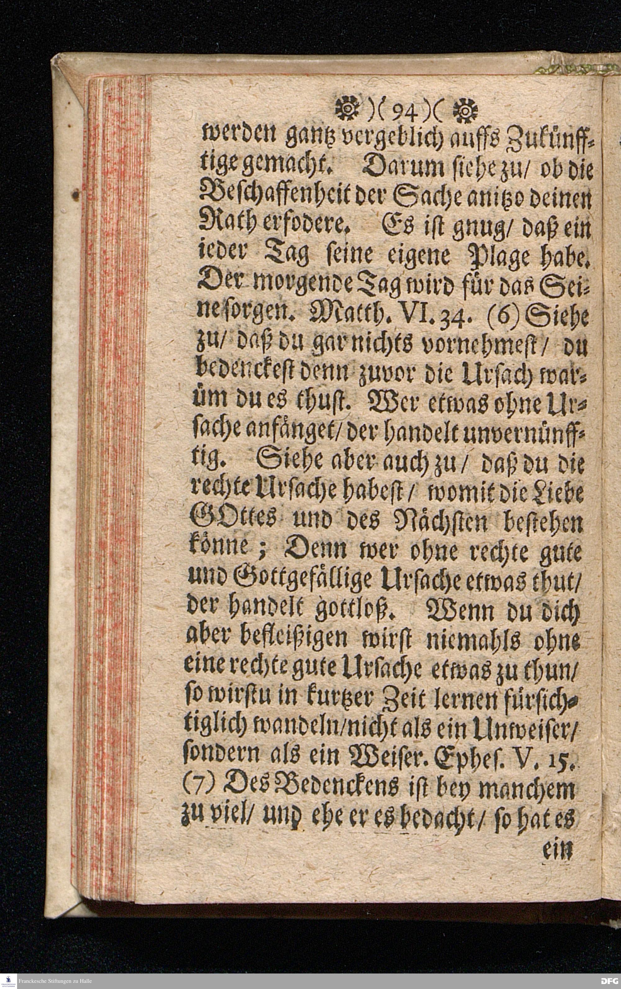 M.August Hermann Franckens Theolog.P.P.& P.Glauch. Schrifftmäßige Lebens-Regeln / Wie man so wohl bey als auch ausser [der] Gesellschafft die Liebe und Freundlichkeit gegen den Nächsten, die Freudigkeit eines guten Gewissens für GOTT bewahren, und im Christenthum zunehmen soll. Zum Siebenden mal auffgeleget. LEIPZIG, Bey Johann Heinichens sel. Witwe. 1717.