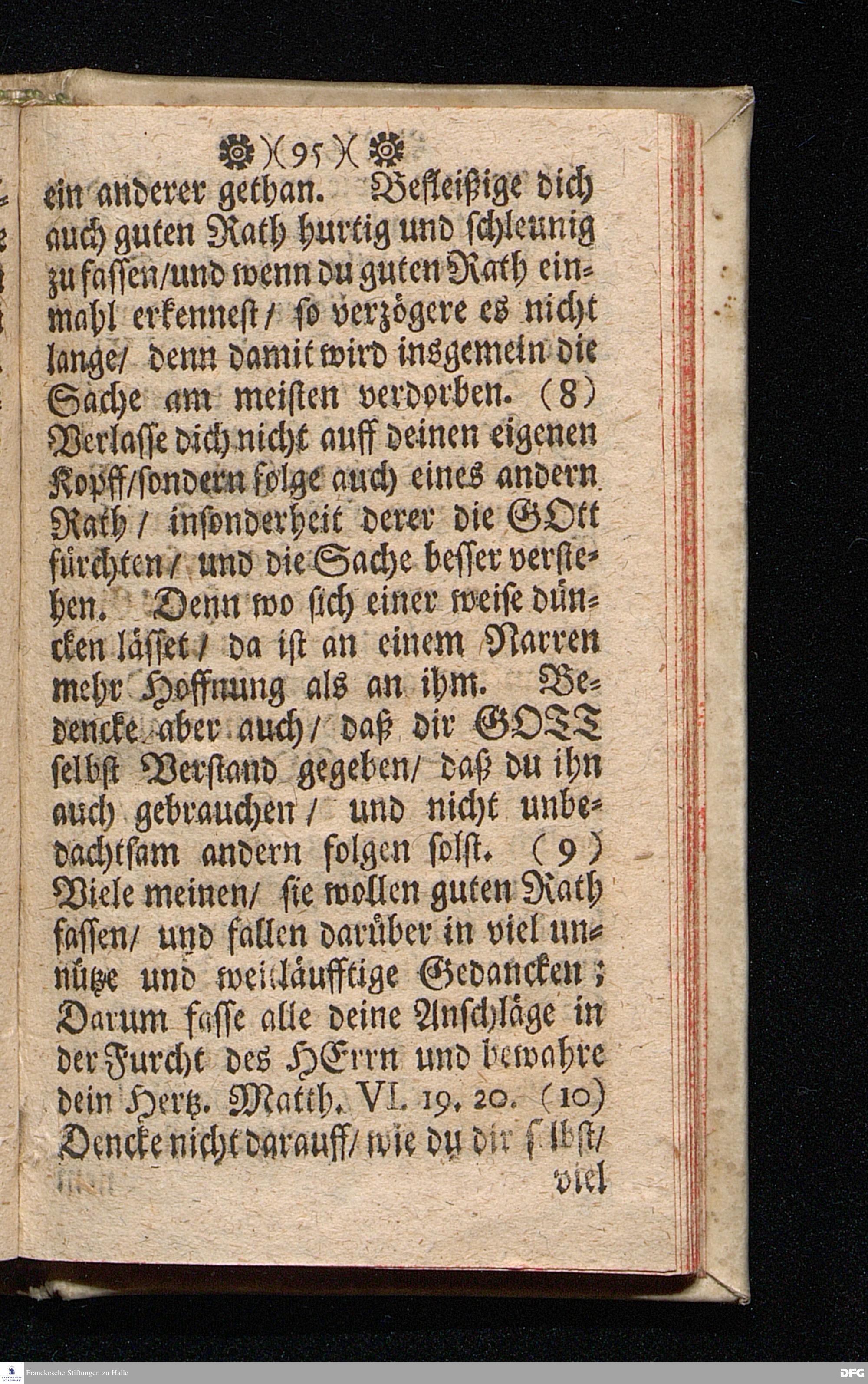 M.August Hermann Franckens Theolog.P.P.& P.Glauch. Schrifftmäßige Lebens-Regeln / Wie man so wohl bey als auch ausser [der] Gesellschafft die Liebe und Freundlichkeit gegen den Nächsten, die Freudigkeit eines guten Gewissens für GOTT bewahren, und im Christenthum zunehmen soll. Zum Siebenden mal auffgeleget. LEIPZIG, Bey Johann Heinichens sel. Witwe. 1717.