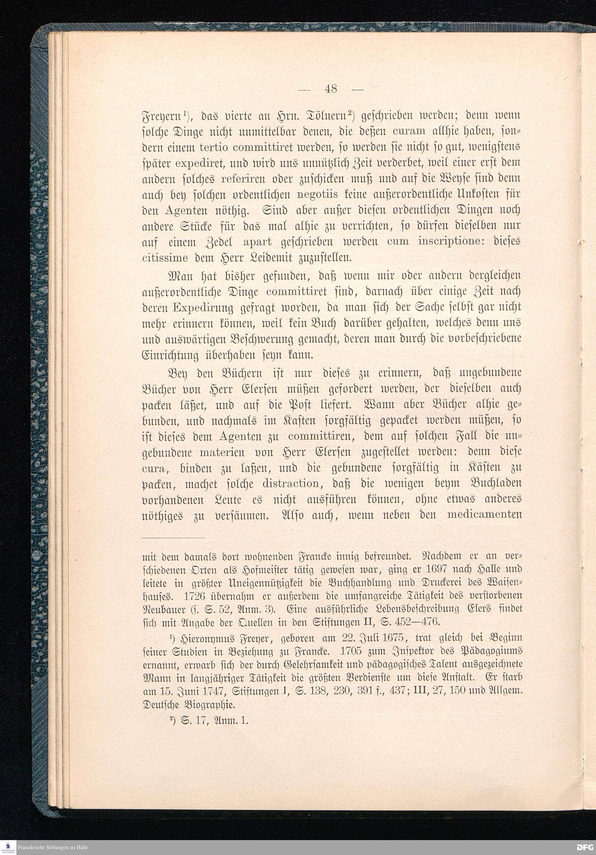 A.H.Franckes Briefe an den Grafen Heinrich XXIV. j.L. Reuß zu Köstritz und seine Gemahlin Eleonore aus den Jahren 1704 bis 1727 als Beitrag zur Geschichte des Pietismus herausgegeben von Dr.Berthold Schmidt Fürstl.Reuß j.L.Archivrat und Lic.theol. Otto Meusel Gymnasialoberlehrer in Schleiz. Leipzig, Verlag der Dürr'schen Buchhandlung 1905.