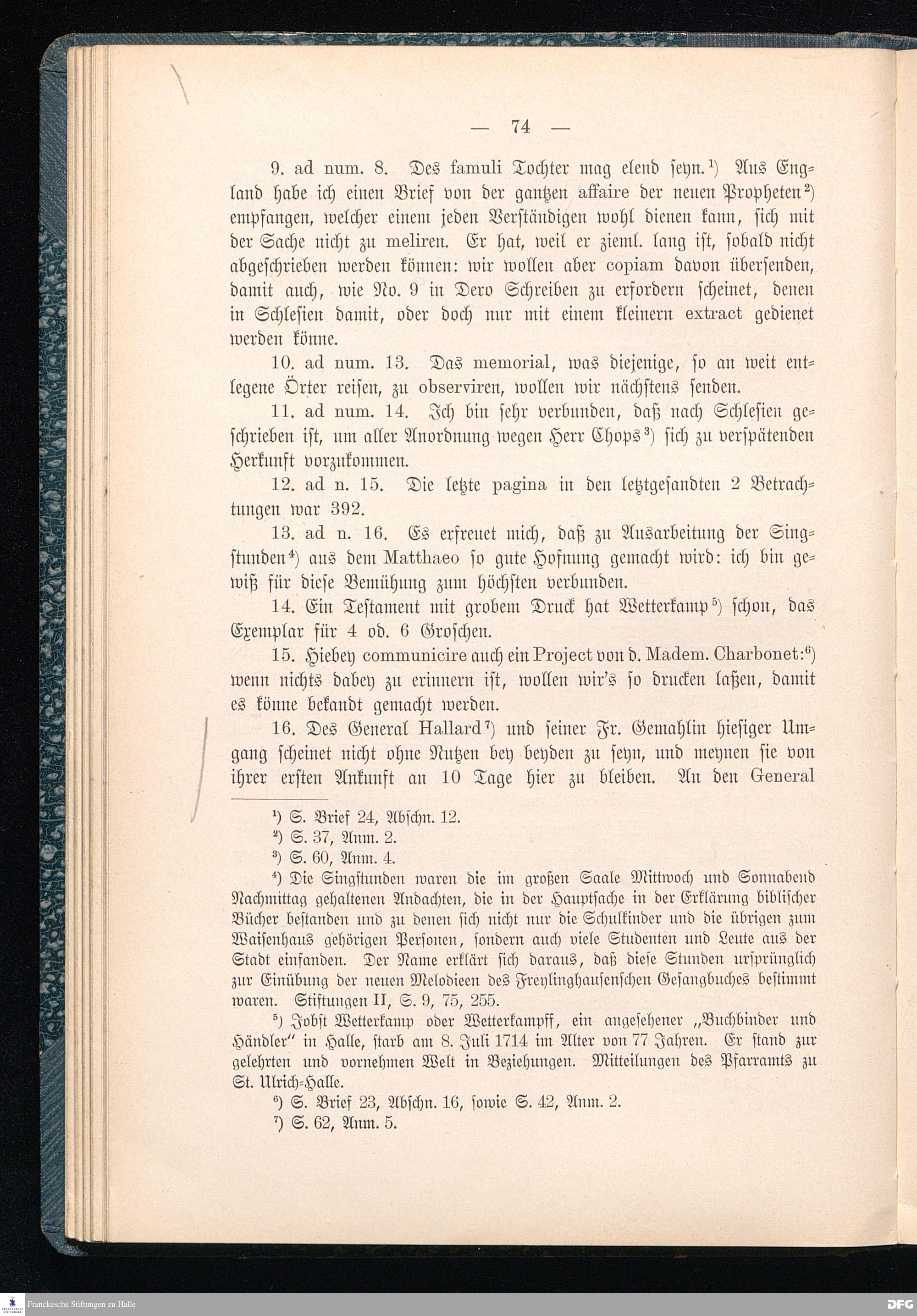 A.H.Franckes Briefe an den Grafen Heinrich XXIV. j.L. Reuß zu Köstritz und seine Gemahlin Eleonore aus den Jahren 1704 bis 1727 als Beitrag zur Geschichte des Pietismus herausgegeben von Dr.Berthold Schmidt Fürstl.Reuß j.L.Archivrat und Lic.theol. Otto Meusel Gymnasialoberlehrer in Schleiz. Leipzig, Verlag der Dürr'schen Buchhandlung 1905.