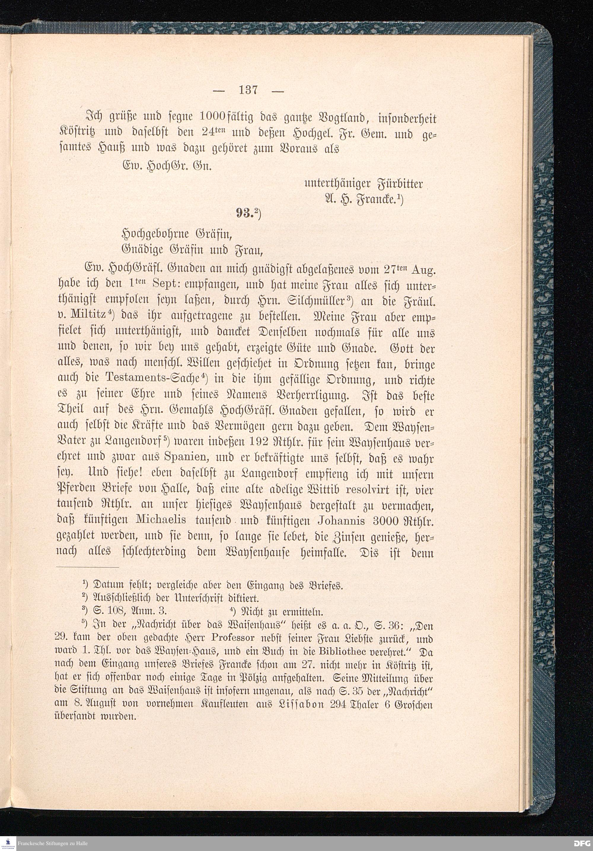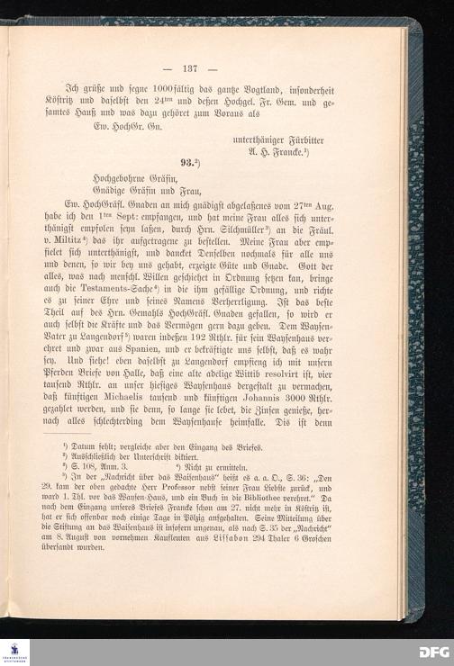 A.H.Franckes Briefe an den Grafen Heinrich XXIV. j.L. Reuß zu Köstritz und seine Gemahlin Eleonore aus den Jahren 1704 bis 1727 als Beitrag zur Geschichte des Pietismus herausgegeben von Dr.Berthold Schmidt Fürstl.Reuß j.L.Archivrat und Lic.theol. Otto Meusel Gymnasialoberlehrer in Schleiz. Leipzig, Verlag der Dürr'schen Buchhandlung 1905.