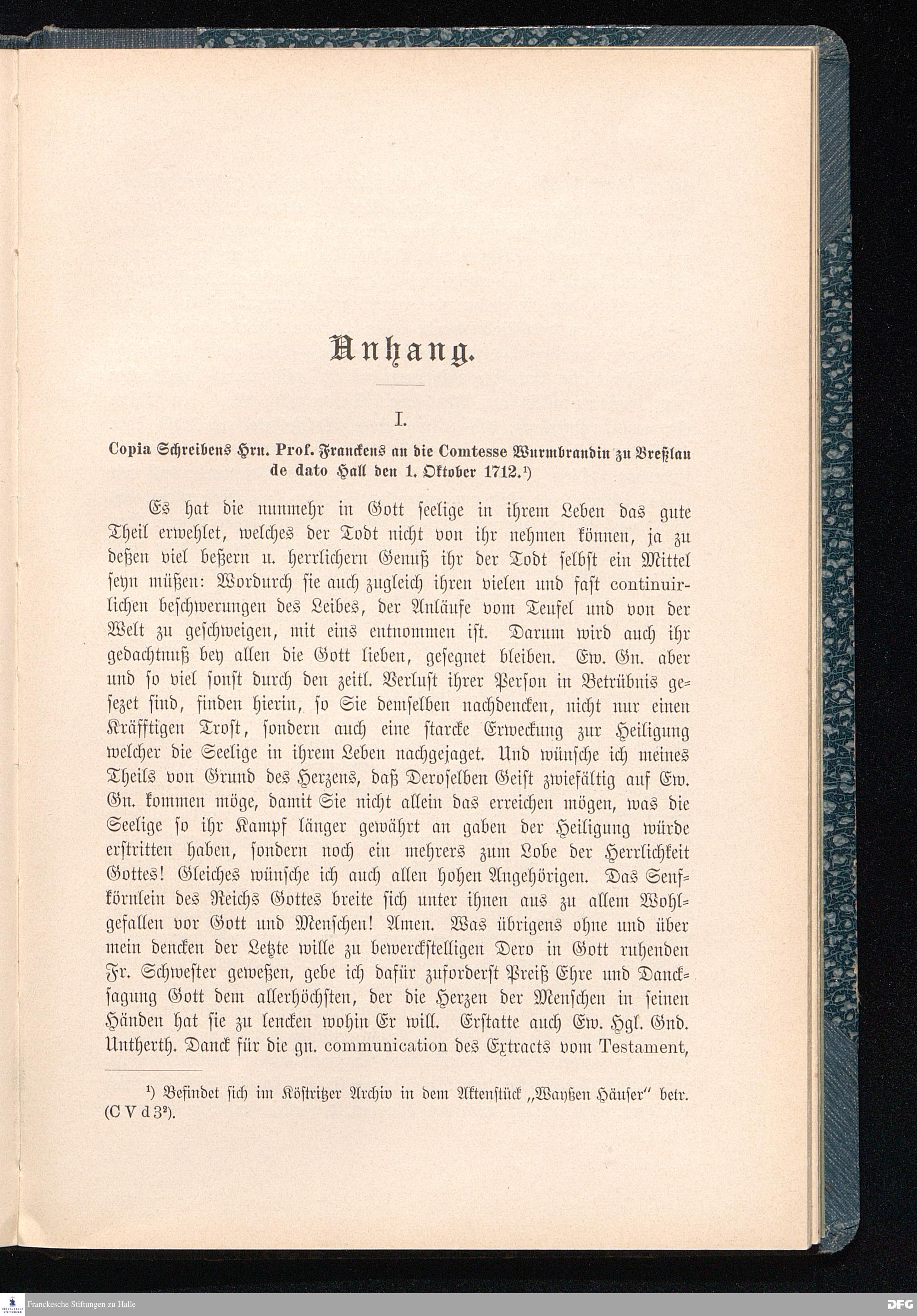 A.H.Franckes Briefe an den Grafen Heinrich XXIV. j.L. Reuß zu Köstritz und seine Gemahlin Eleonore aus den Jahren 1704 bis 1727 als Beitrag zur Geschichte des Pietismus herausgegeben von Dr.Berthold Schmidt Fürstl.Reuß j.L.Archivrat und Lic.theol. Otto Meusel Gymnasialoberlehrer in Schleiz. Leipzig, Verlag der Dürr'schen Buchhandlung 1905.