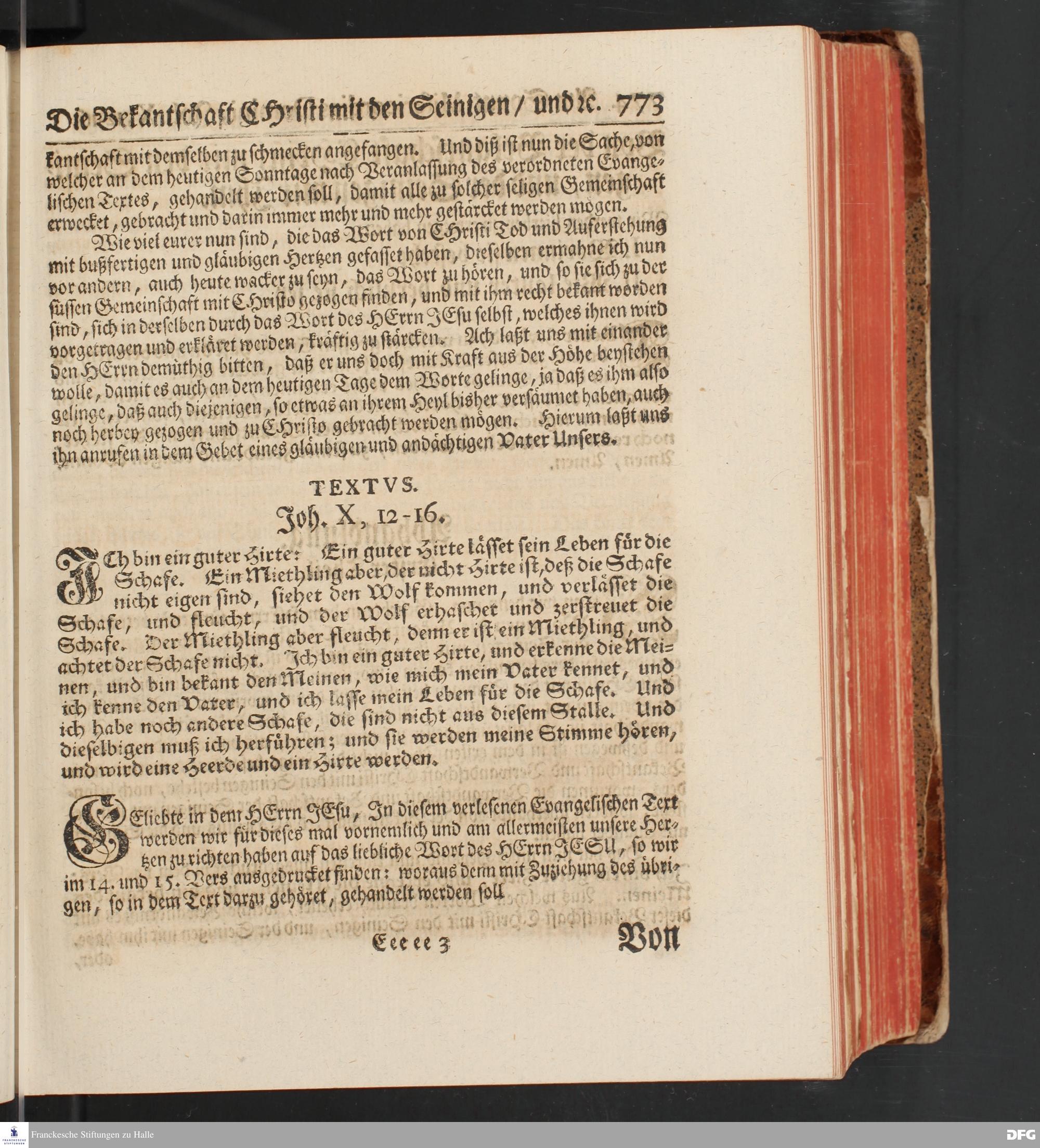 August Hermann Franckens, S.Theol.Prof.und Past. Sonn= und Fest=Tags=Predigten / Welche Theils in Halle, theils an verschiedenen auswärtigen Oertern, von wichtigen und auserlesenen Materien gehalten worden, Nebst Vorbereitung auf die hohen Feste und nützlichen Registern. Dritte Auflage. HALLE, gedruckt und verlegt im Wäysen=Hause MDCCXL. Mit Königl.Preuß.und Churfl.Brandenb.Privileg.