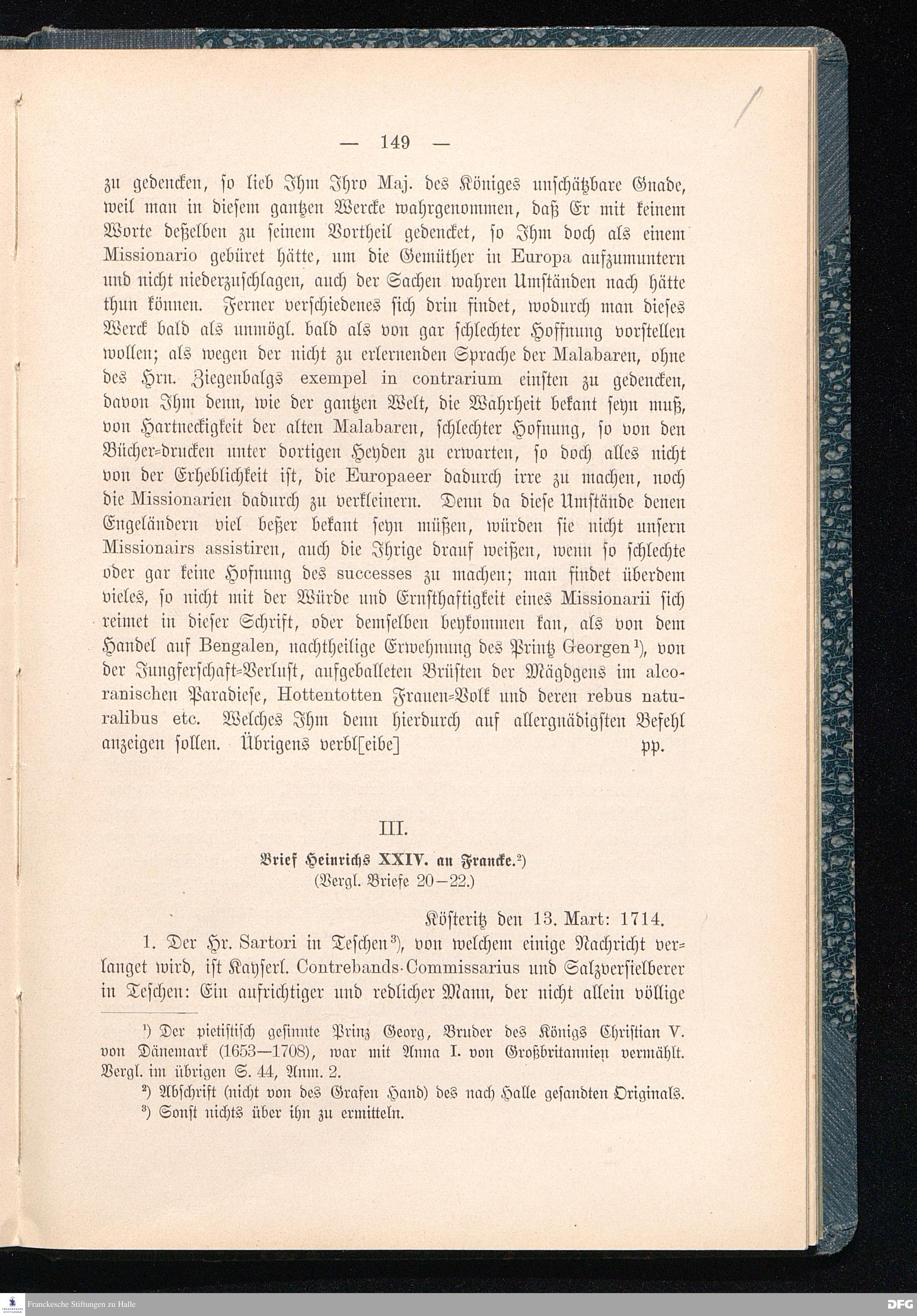 A.H.Franckes Briefe an den Grafen Heinrich XXIV. j.L. Reuß zu Köstritz und seine Gemahlin Eleonore aus den Jahren 1704 bis 1727 als Beitrag zur Geschichte des Pietismus herausgegeben von Dr.Berthold Schmidt Fürstl.Reuß j.L.Archivrat und Lic.theol. Otto Meusel Gymnasialoberlehrer in Schleiz. Leipzig, Verlag der Dürr'schen Buchhandlung 1905.