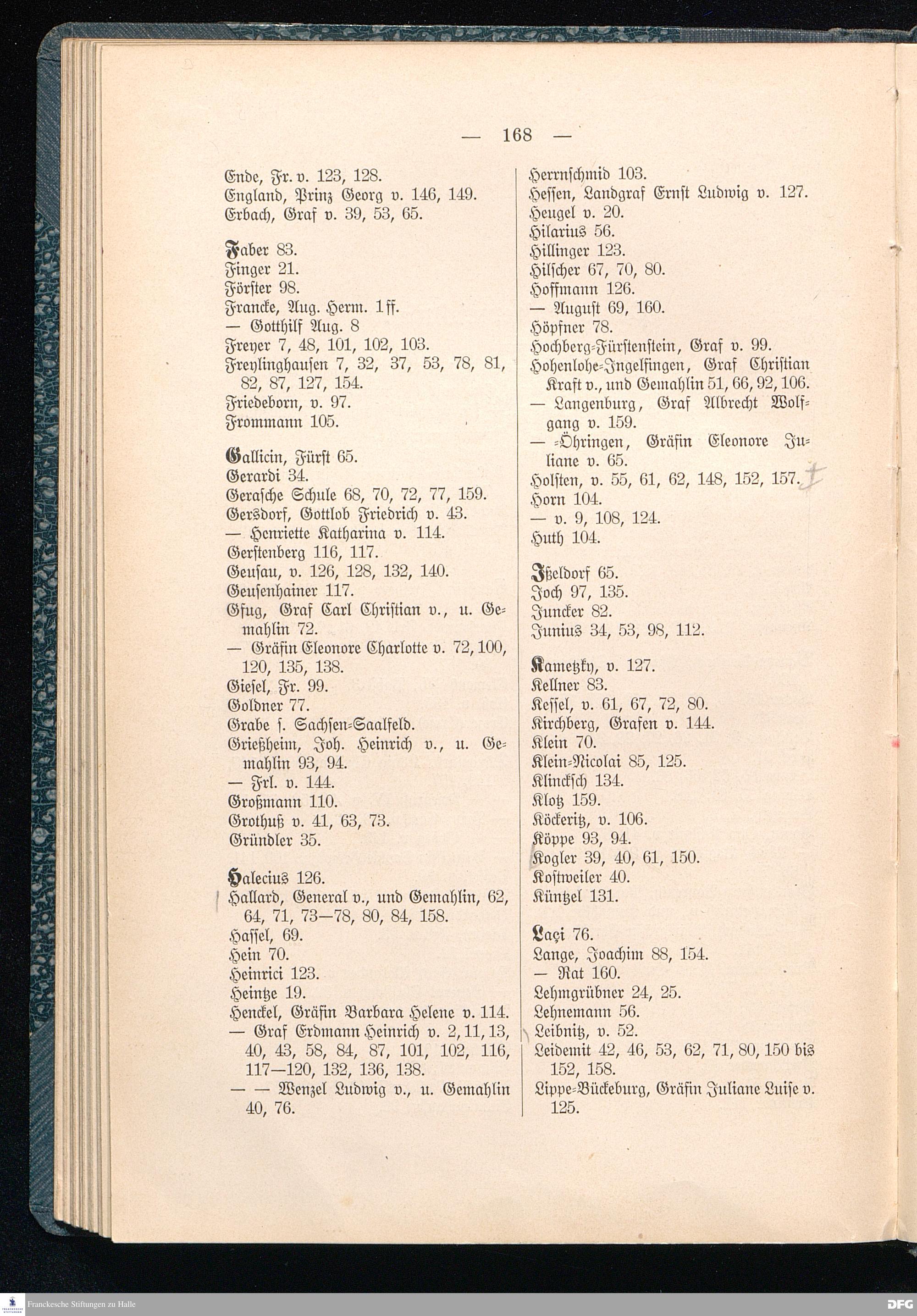 A.H.Franckes Briefe an den Grafen Heinrich XXIV. j.L. Reuß zu Köstritz und seine Gemahlin Eleonore aus den Jahren 1704 bis 1727 als Beitrag zur Geschichte des Pietismus herausgegeben von Dr.Berthold Schmidt Fürstl.Reuß j.L.Archivrat und Lic.theol. Otto Meusel Gymnasialoberlehrer in Schleiz. Leipzig, Verlag der Dürr'schen Buchhandlung 1905.