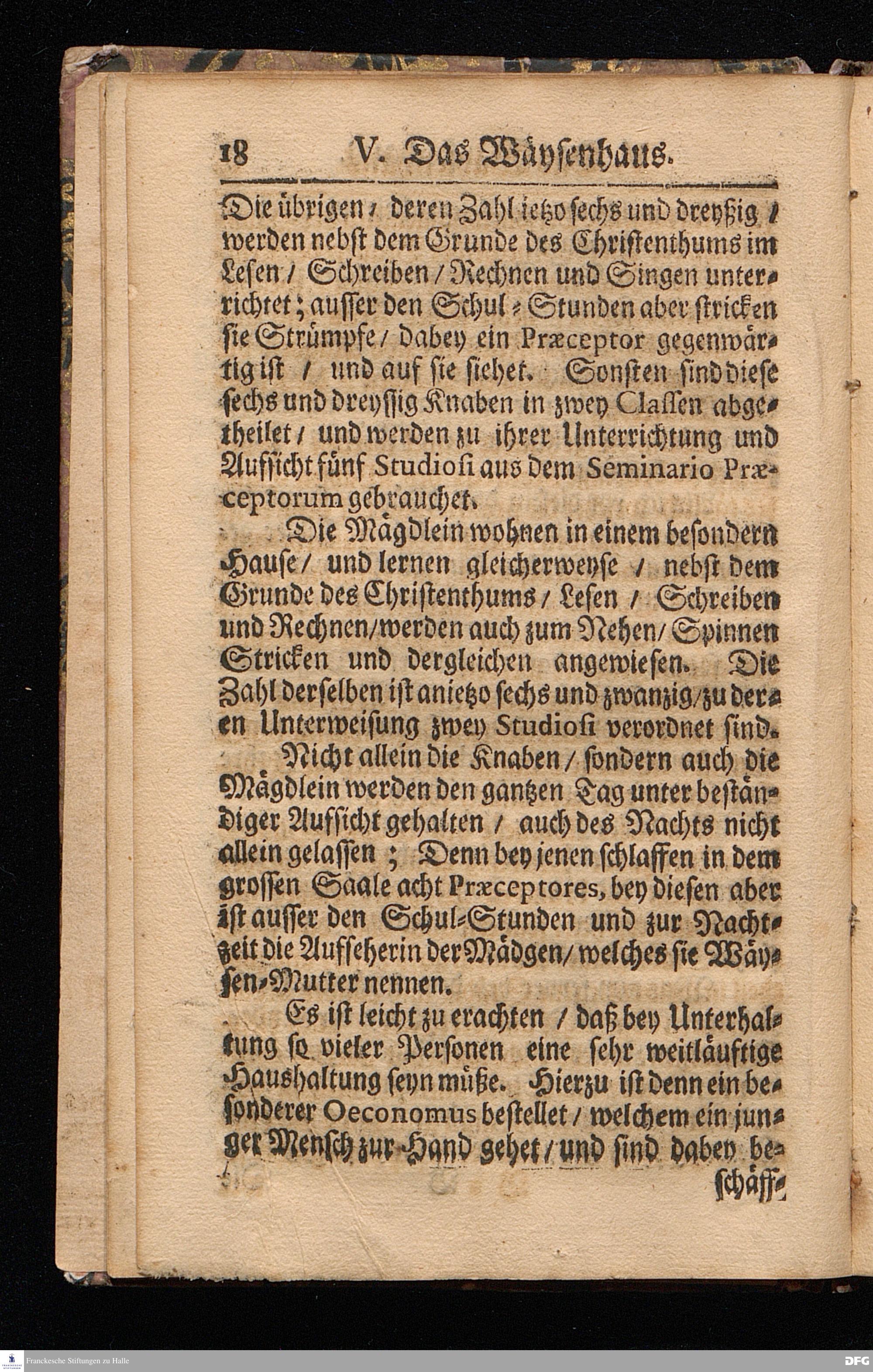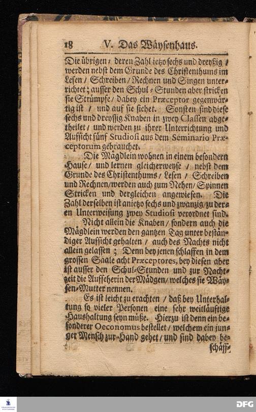 Wahrhafte und umständliche Nachricht Von dem Bißherigen und gegenwärtigen ZUSTANDE Des Wäysen=Hauses und der übrigen Anstalten Zu Glaucha vor Halle / In zweyen Send=Schreiben verfasset. Zum Druck gegeben von August Hermann Francken / S.Theol.Prof.zu Halle und Past.zu Glaucha vor Halle. [Bibelzitat.] HALLE / in Verlegung des Wäysenhauses, MDCCVII