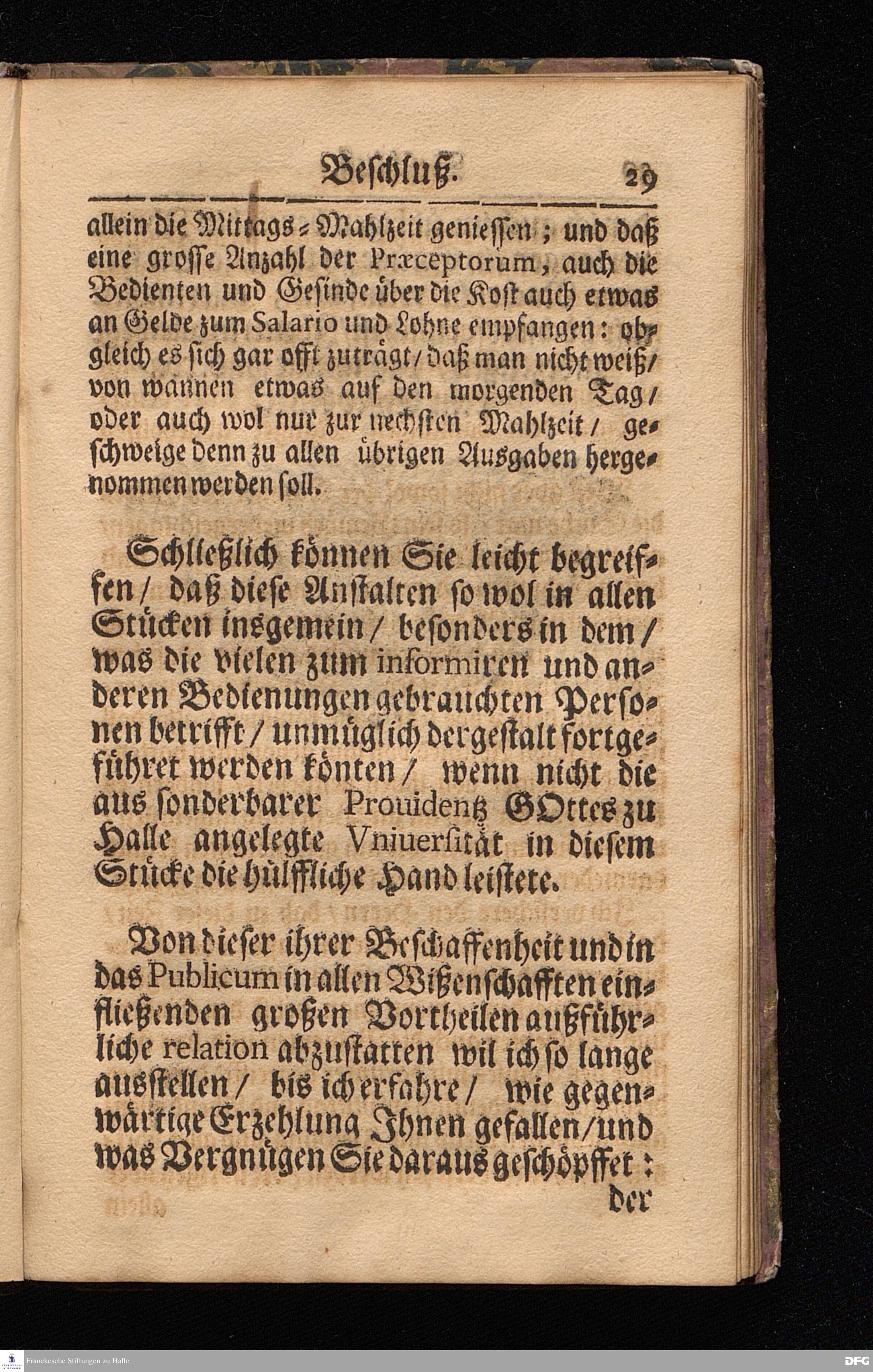 Wahrhafte und umständliche Nachricht Von dem Bißherigen und gegenwärtigen ZUSTANDE Des Wäysen=Hauses und der übrigen Anstalten Zu Glaucha vor Halle / In zweyen Send=Schreiben verfasset. Zum Druck gegeben von August Hermann Francken / S.Theol.Prof.zu Halle und Past.zu Glaucha vor Halle. [Bibelzitat.] HALLE / in Verlegung des Wäysenhauses, MDCCVII
