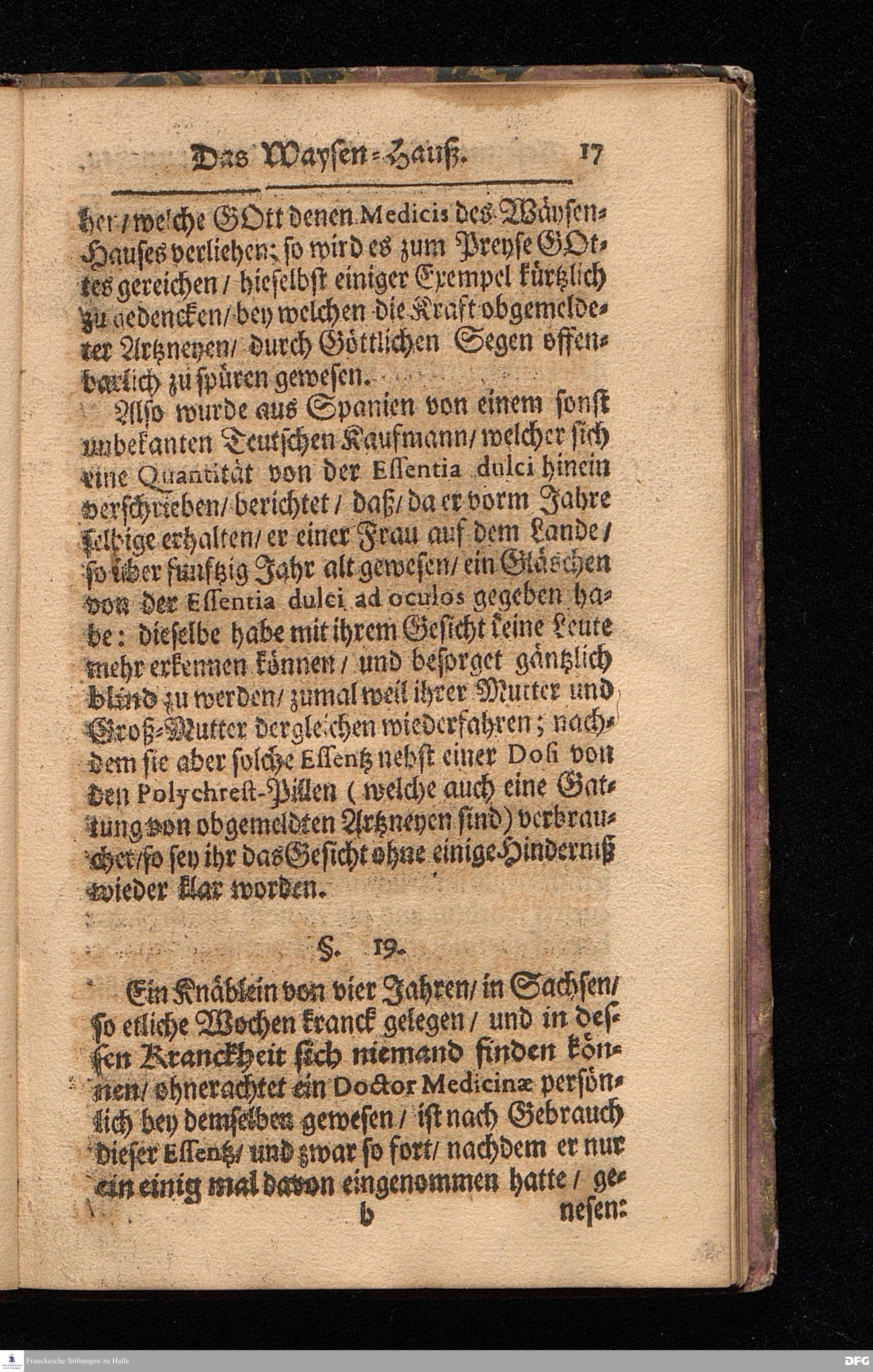 Wahrhafte und umständliche Nachricht Von dem Bißherigen und gegenwärtigen ZUSTANDE Des Wäysen=Hauses und der übrigen Anstalten Zu Glaucha vor Halle / In zweyen Send=Schreiben verfasset. Zum Druck gegeben von August Hermann Francken / S.Theol.Prof.zu Halle und Past.zu Glaucha vor Halle. [Bibelzitat.] HALLE / in Verlegung des Wäysenhauses, MDCCVII