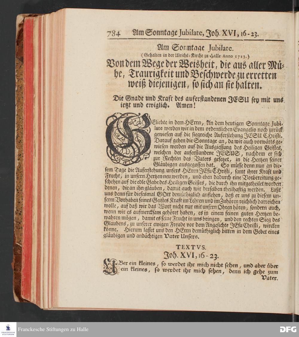 August Hermann Franckens, S.Theol.Prof.und Past. Sonn= und Fest=Tags=Predigten / Welche Theils in Halle, theils an verschiedenen auswärtigen Oertern, von wichtigen und auserlesenen Materien gehalten worden, Nebst Vorbereitung auf die hohen Feste und nützlichen Registern. Dritte Auflage. HALLE, gedruckt und verlegt im Wäysen=Hause MDCCXL. Mit Königl.Preuß.und Churfl.Brandenb.Privileg.