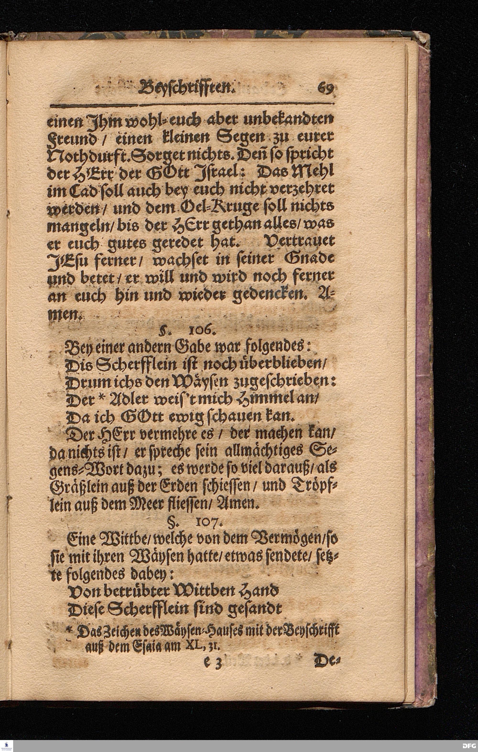 Wahrhafte und umständliche Nachricht Von dem Bißherigen und gegenwärtigen ZUSTANDE Des Wäysen=Hauses und der übrigen Anstalten Zu Glaucha vor Halle / In zweyen Send=Schreiben verfasset. Zum Druck gegeben von August Hermann Francken / S.Theol.Prof.zu Halle und Past.zu Glaucha vor Halle. [Bibelzitat.] HALLE / in Verlegung des Wäysenhauses, MDCCVII