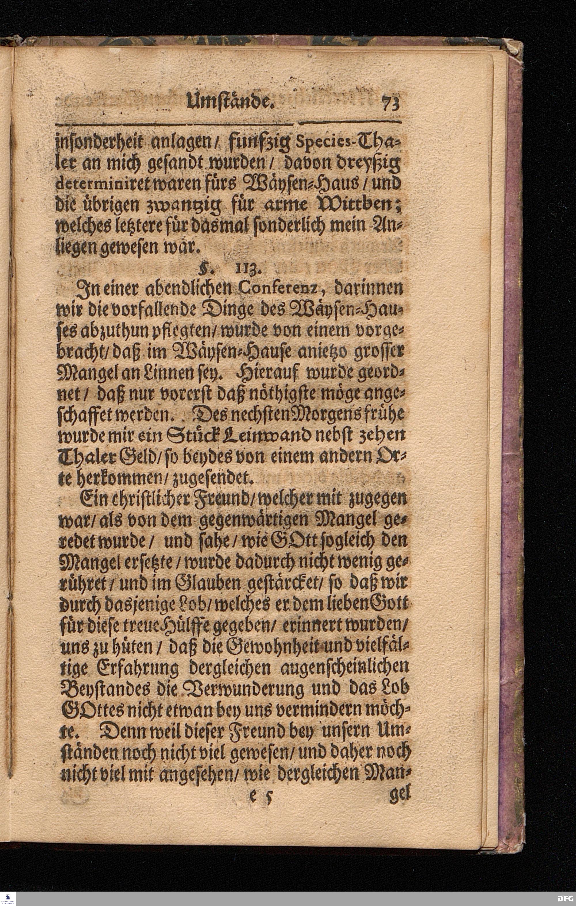 Wahrhafte und umständliche Nachricht Von dem Bißherigen und gegenwärtigen ZUSTANDE Des Wäysen=Hauses und der übrigen Anstalten Zu Glaucha vor Halle / In zweyen Send=Schreiben verfasset. Zum Druck gegeben von August Hermann Francken / S.Theol.Prof.zu Halle und Past.zu Glaucha vor Halle. [Bibelzitat.] HALLE / in Verlegung des Wäysenhauses, MDCCVII