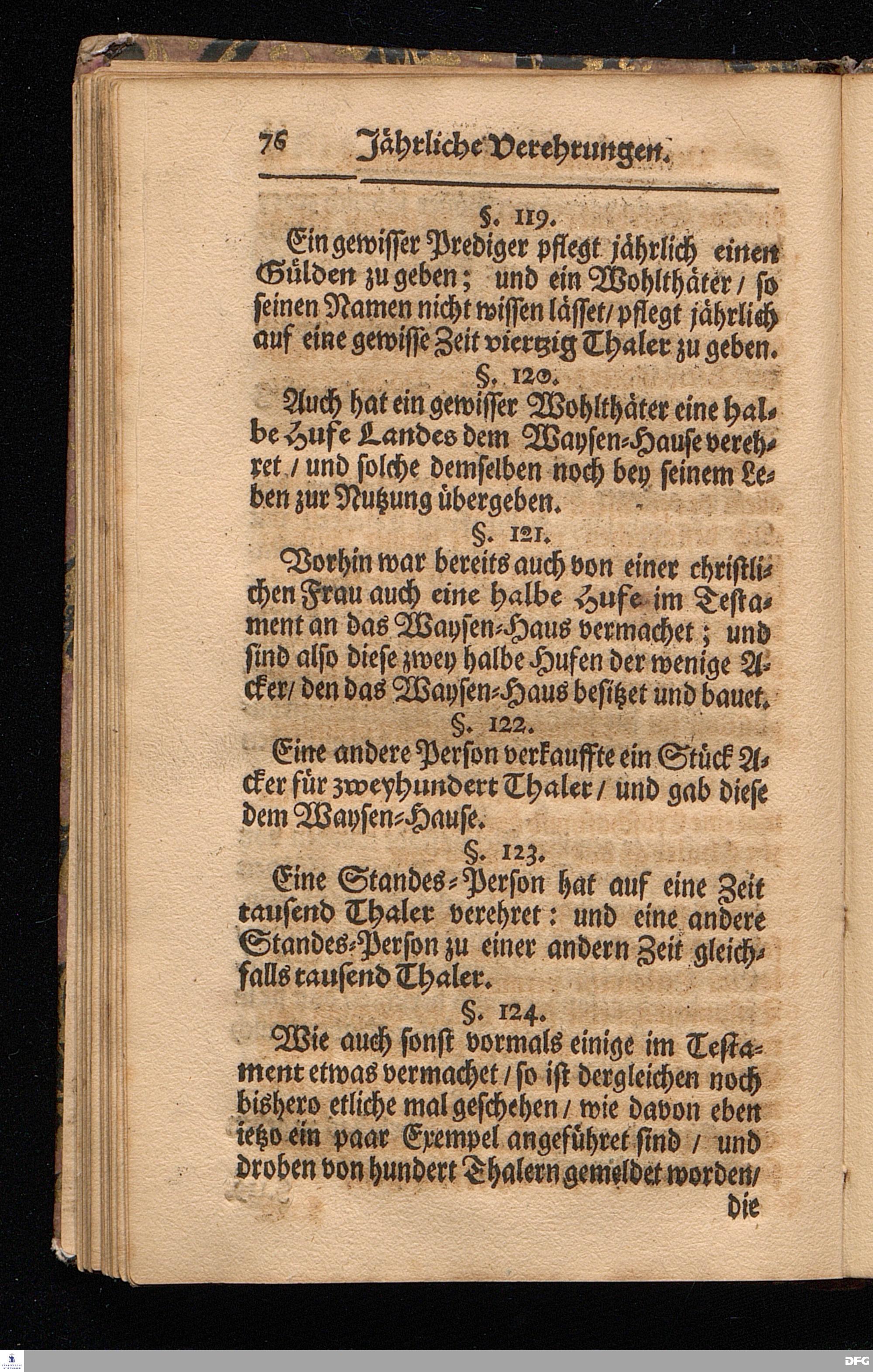 Wahrhafte und umständliche Nachricht Von dem Bißherigen und gegenwärtigen ZUSTANDE Des Wäysen=Hauses und der übrigen Anstalten Zu Glaucha vor Halle / In zweyen Send=Schreiben verfasset. Zum Druck gegeben von August Hermann Francken / S.Theol.Prof.zu Halle und Past.zu Glaucha vor Halle. [Bibelzitat.] HALLE / in Verlegung des Wäysenhauses, MDCCVII