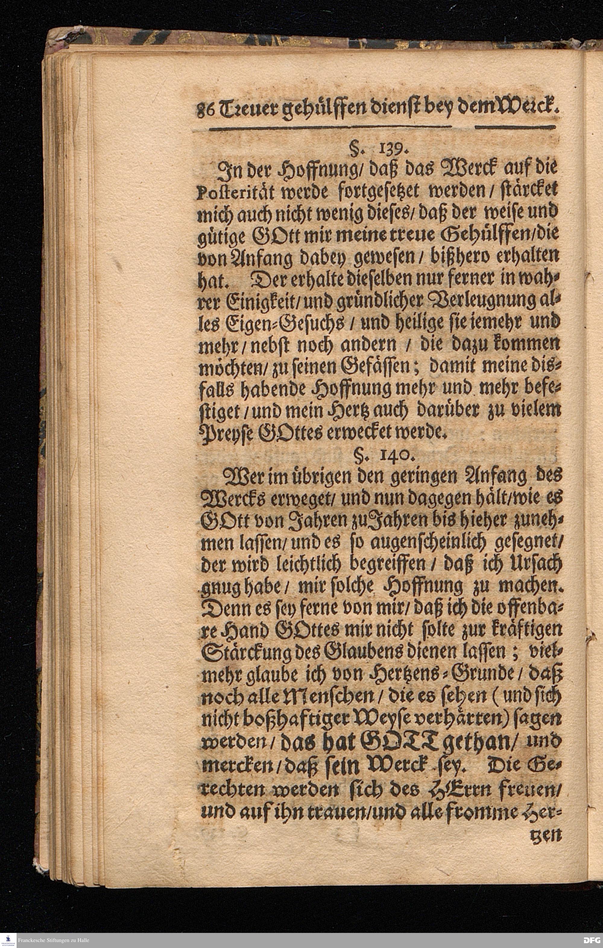 Wahrhafte und umständliche Nachricht Von dem Bißherigen und gegenwärtigen ZUSTANDE Des Wäysen=Hauses und der übrigen Anstalten Zu Glaucha vor Halle / In zweyen Send=Schreiben verfasset. Zum Druck gegeben von August Hermann Francken / S.Theol.Prof.zu Halle und Past.zu Glaucha vor Halle. [Bibelzitat.] HALLE / in Verlegung des Wäysenhauses, MDCCVII