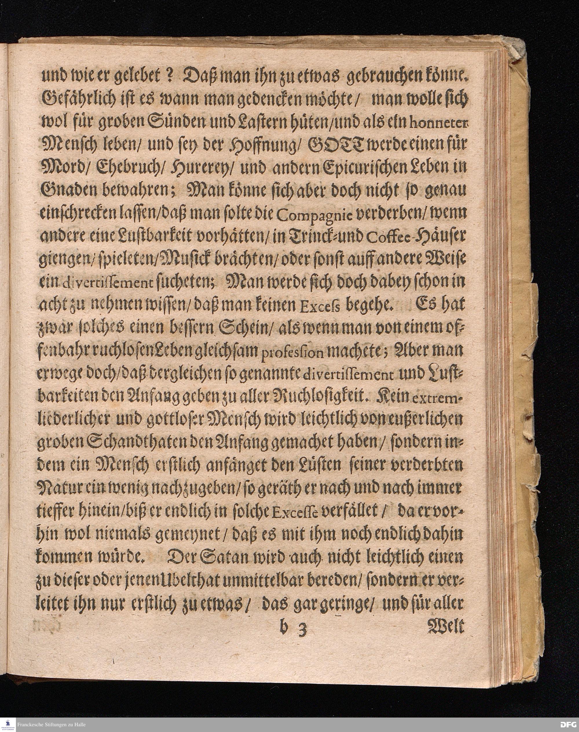 Getreue Väterl.Vermanung PRORECTORIS und SENATUS ACADEMIAE, An Sämptliche Angehörige der Churf.Brandenb.Friedrichs Universität / Durch die jüngst am IV.Trinit. bey nächtlicher Weile geschehenen Entleibung veranlaßet / Daß Sie Allen Müßiggang / liederliche Gesellschafften / Freß= und Sauff=Gelage / Nächtliche Musicken / und andere Schwermereyen sampt allen unordentlichen Leben / als die Ursache so vieler Ubelthaten und betrübten Fälle / hinfüro vermeiden / und sich insgesamt den Pflichten des Christenthums und Legibus Academiæ, dazu sie so theuer verbunden gemäß bezeigen mögen. Publicatum Halle den 30.Jul.1699. Druckts Johann Jacob Krebs / Univers.Buchdr.