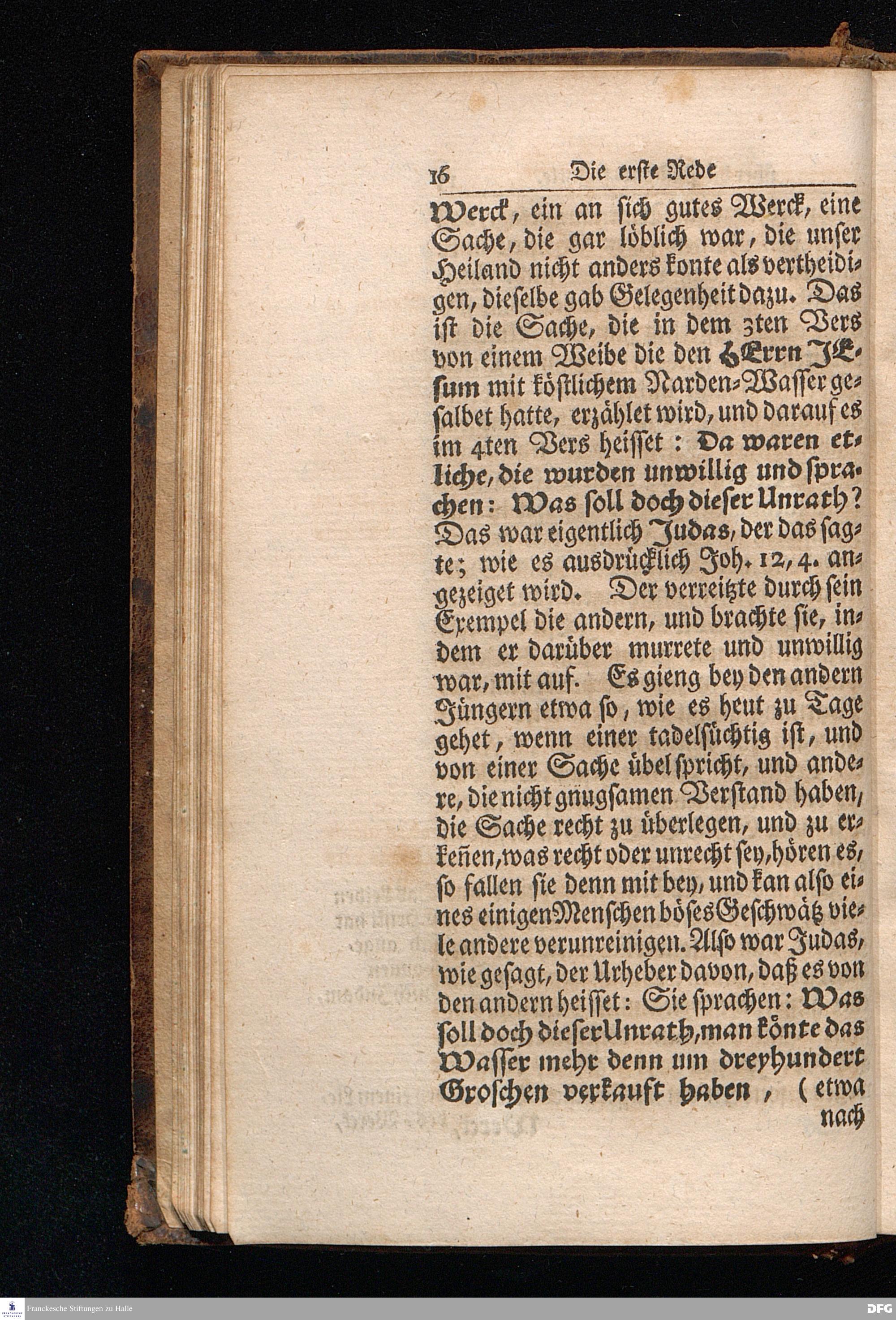 August Hermann Franckens S.Theol.Prof.Ord.und Past. Oeffentliche Reden über die Paßions=Historie / Wie dieselbe vom Evangelisten Marco im 14. und 15. Cap. beschrieben ist / gehalten Von Esto mihi bis Ostern 1712, In dem Wäysenhause zu Glaucha an Halle. Dritte Edition. HALLE, Gedruckt und verlegt im Wäysenhause, MDCCXXIV.