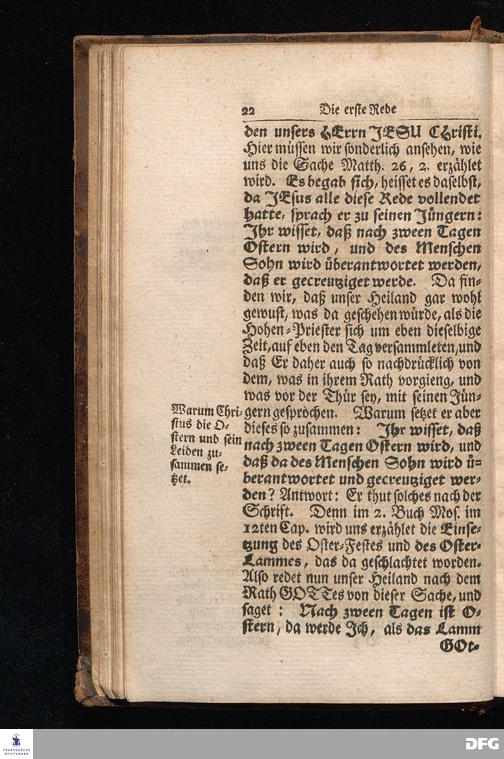 August Hermann Franckens S.Theol.Prof.Ord.und Past. Oeffentliche Reden über die Paßions=Historie / Wie dieselbe vom Evangelisten Marco im 14. und 15. Cap. beschrieben ist / gehalten Von Esto mihi bis Ostern 1712, In dem Wäysenhause zu Glaucha an Halle. Dritte Edition. HALLE, Gedruckt und verlegt im Wäysenhause, MDCCXXIV.