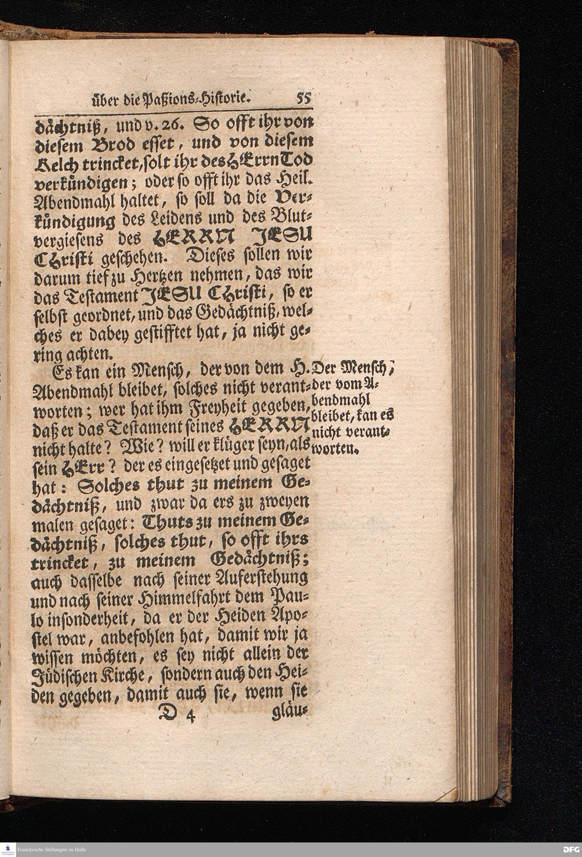 August Hermann Franckens S.Theol.Prof.Ord.und Past. Oeffentliche Reden über die Paßions=Historie / Wie dieselbe vom Evangelisten Marco im 14. und 15. Cap. beschrieben ist / gehalten Von Esto mihi bis Ostern 1712, In dem Wäysenhause zu Glaucha an Halle. Dritte Edition. HALLE, Gedruckt und verlegt im Wäysenhause, MDCCXXIV.