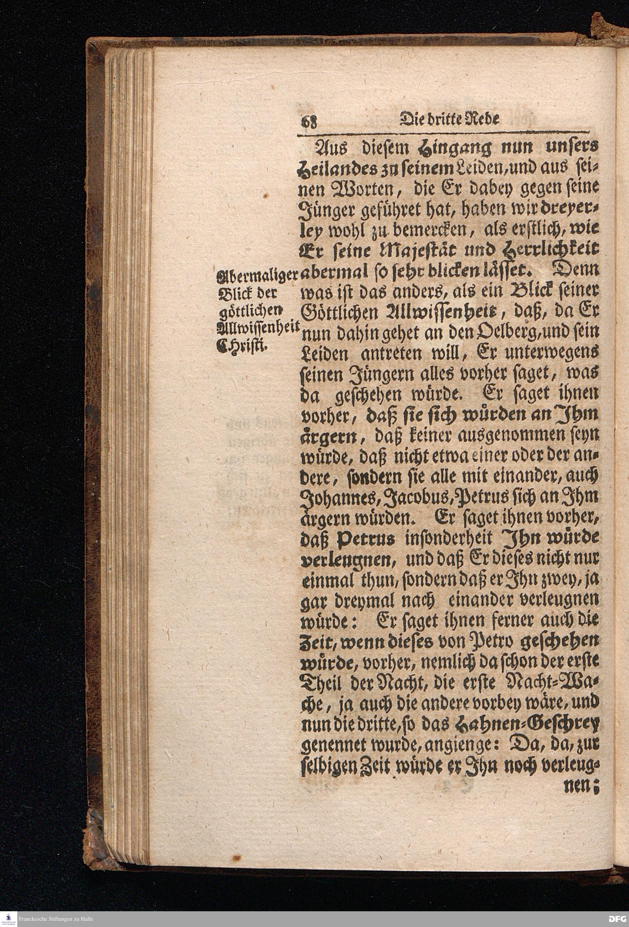 August Hermann Franckens S.Theol.Prof.Ord.und Past. Oeffentliche Reden über die Paßions=Historie / Wie dieselbe vom Evangelisten Marco im 14. und 15. Cap. beschrieben ist / gehalten Von Esto mihi bis Ostern 1712, In dem Wäysenhause zu Glaucha an Halle. Dritte Edition. HALLE, Gedruckt und verlegt im Wäysenhause, MDCCXXIV.