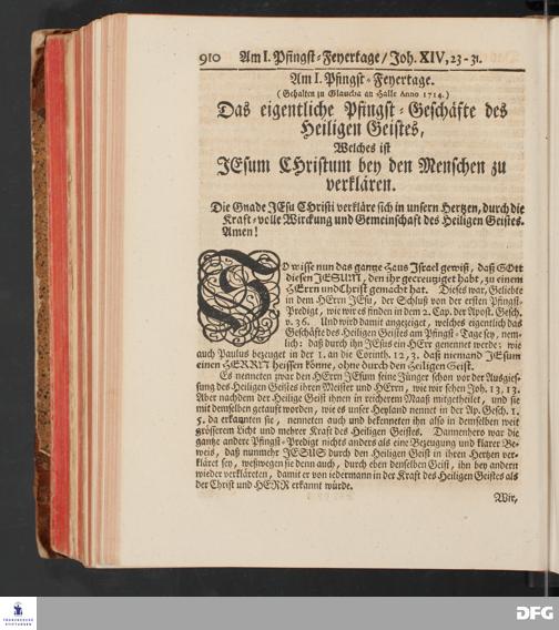 August Hermann Franckens, S.Theol.Prof.und Past. Sonn= und Fest=Tags=Predigten / Welche Theils in Halle, theils an verschiedenen auswärtigen Oertern, von wichtigen und auserlesenen Materien gehalten worden, Nebst Vorbereitung auf die hohen Feste und nützlichen Registern. Dritte Auflage. HALLE, gedruckt und verlegt im Wäysen=Hause MDCCXL. Mit Königl.Preuß.und Churfl.Brandenb.Privileg.