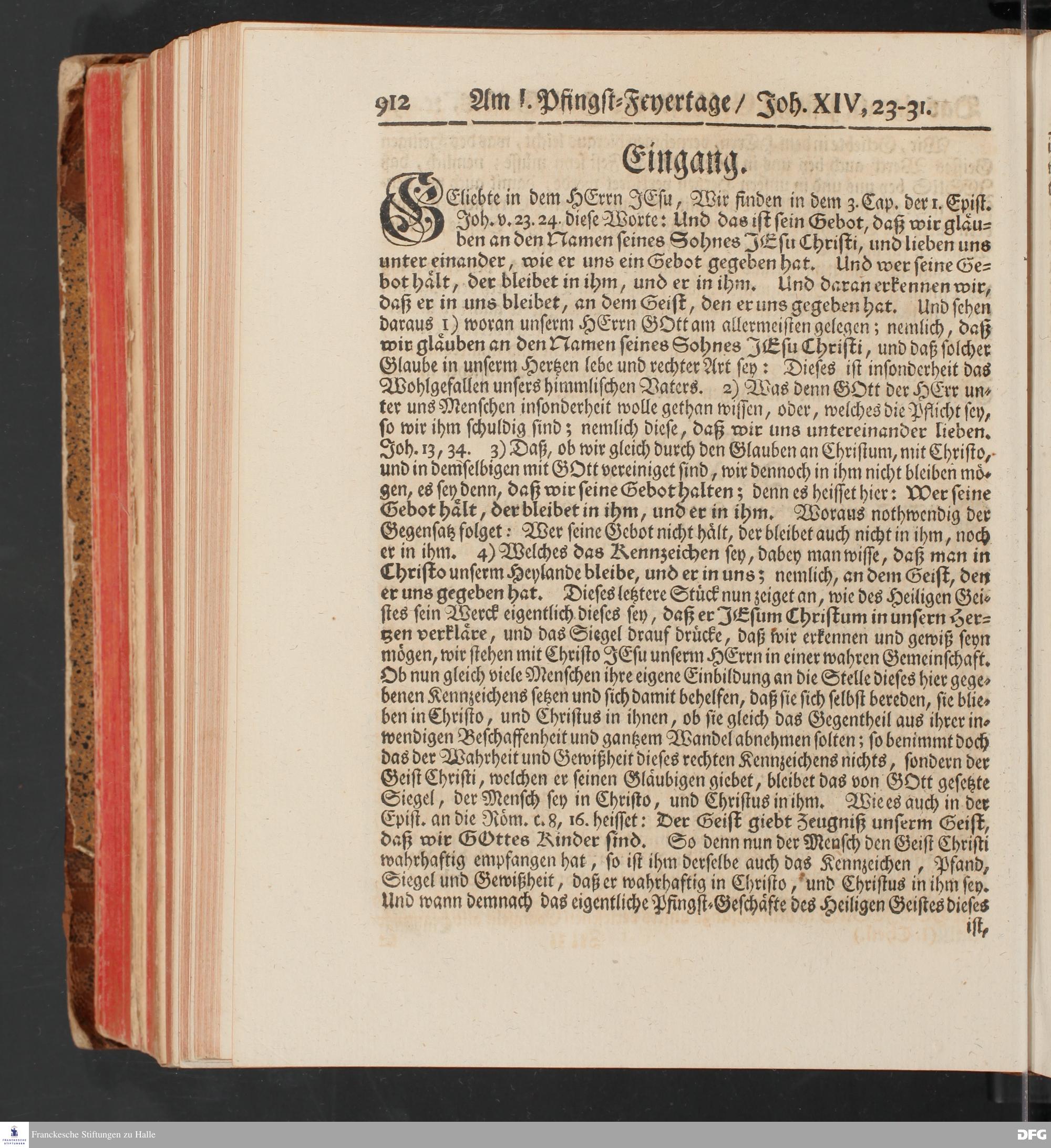 August Hermann Franckens, S.Theol.Prof.und Past. Sonn= und Fest=Tags=Predigten / Welche Theils in Halle, theils an verschiedenen auswärtigen Oertern, von wichtigen und auserlesenen Materien gehalten worden, Nebst Vorbereitung auf die hohen Feste und nützlichen Registern. Dritte Auflage. HALLE, gedruckt und verlegt im Wäysen=Hause MDCCXL. Mit Königl.Preuß.und Churfl.Brandenb.Privileg.