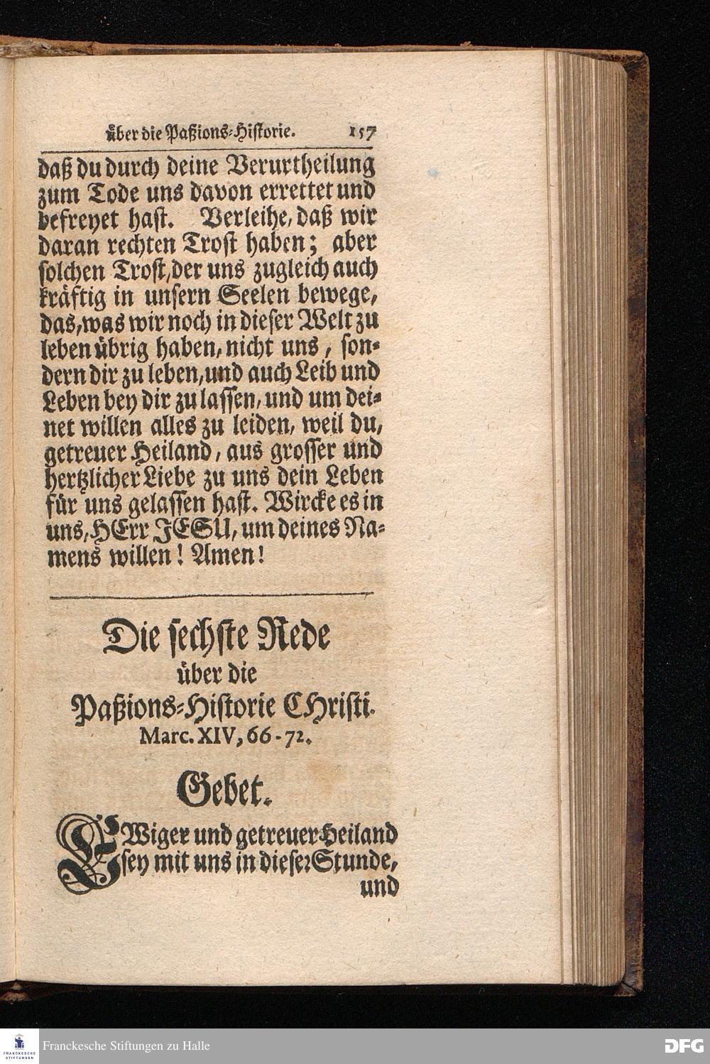 August Hermann Franckens S.Theol.Prof.Ord.und Past. Oeffentliche Reden über die Paßions=Historie / Wie dieselbe vom Evangelisten Marco im 14. und 15. Cap. beschrieben ist / gehalten Von Esto mihi bis Ostern 1712, In dem Wäysenhause zu Glaucha an Halle. Dritte Edition. HALLE, Gedruckt und verlegt im Wäysenhause, MDCCXXIV.