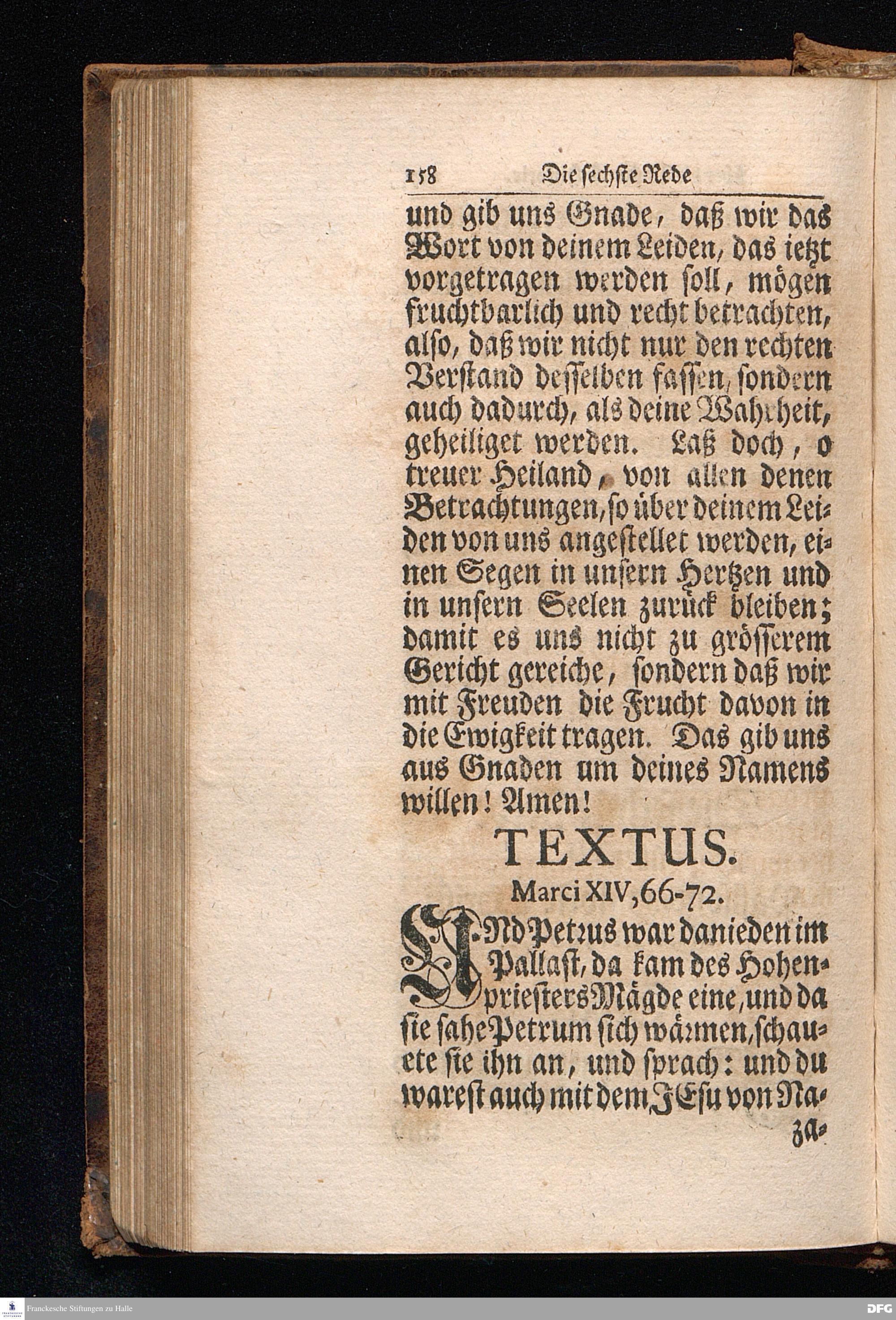 August Hermann Franckens S.Theol.Prof.Ord.und Past. Oeffentliche Reden über die Paßions=Historie / Wie dieselbe vom Evangelisten Marco im 14. und 15. Cap. beschrieben ist / gehalten Von Esto mihi bis Ostern 1712, In dem Wäysenhause zu Glaucha an Halle. Dritte Edition. HALLE, Gedruckt und verlegt im Wäysenhause, MDCCXXIV.