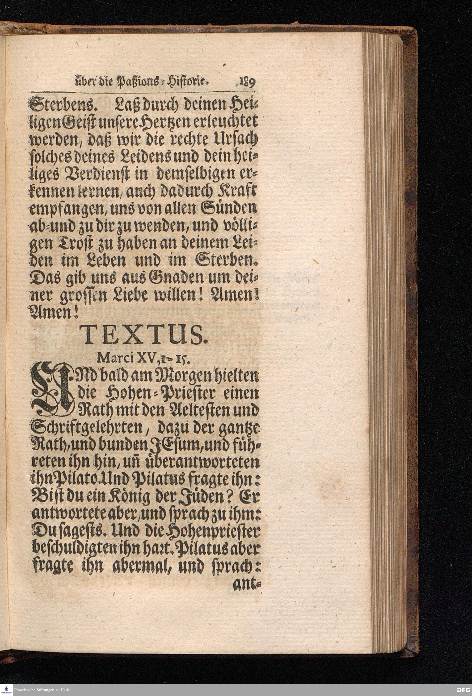 August Hermann Franckens S.Theol.Prof.Ord.und Past. Oeffentliche Reden über die Paßions=Historie / Wie dieselbe vom Evangelisten Marco im 14. und 15. Cap. beschrieben ist / gehalten Von Esto mihi bis Ostern 1712, In dem Wäysenhause zu Glaucha an Halle. Dritte Edition. HALLE, Gedruckt und verlegt im Wäysenhause, MDCCXXIV.