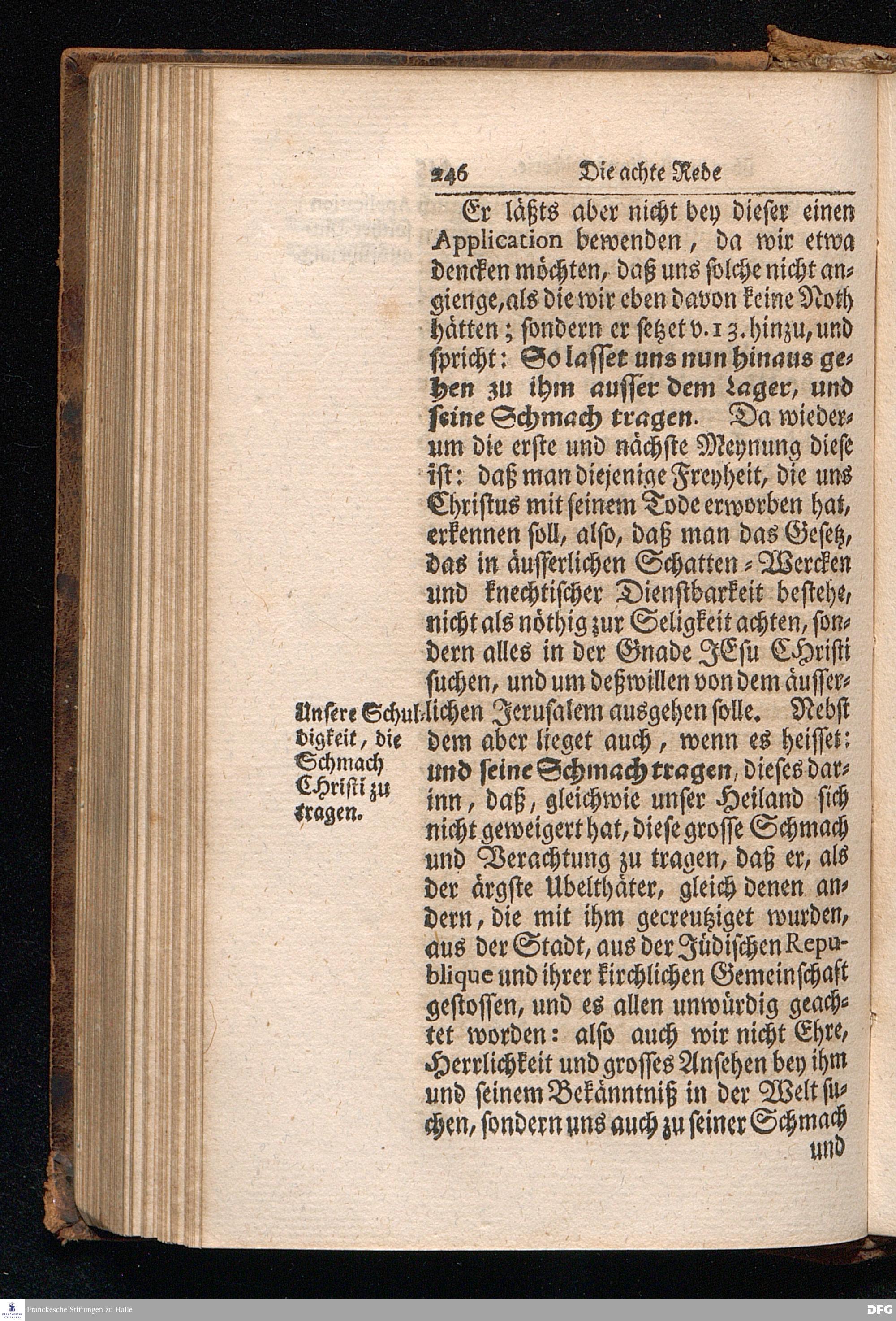 August Hermann Franckens S.Theol.Prof.Ord.und Past. Oeffentliche Reden über die Paßions=Historie / Wie dieselbe vom Evangelisten Marco im 14. und 15. Cap. beschrieben ist / gehalten Von Esto mihi bis Ostern 1712, In dem Wäysenhause zu Glaucha an Halle. Dritte Edition. HALLE, Gedruckt und verlegt im Wäysenhause, MDCCXXIV.