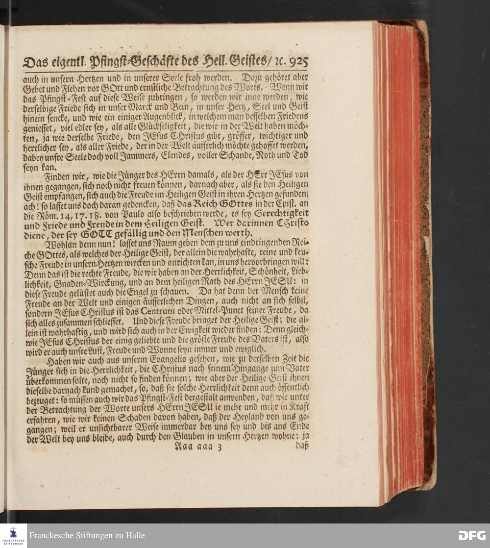 August Hermann Franckens, S.Theol.Prof.und Past. Sonn= und Fest=Tags=Predigten / Welche Theils in Halle, theils an verschiedenen auswärtigen Oertern, von wichtigen und auserlesenen Materien gehalten worden, Nebst Vorbereitung auf die hohen Feste und nützlichen Registern. Dritte Auflage. HALLE, gedruckt und verlegt im Wäysen=Hause MDCCXL. Mit Königl.Preuß.und Churfl.Brandenb.Privileg.